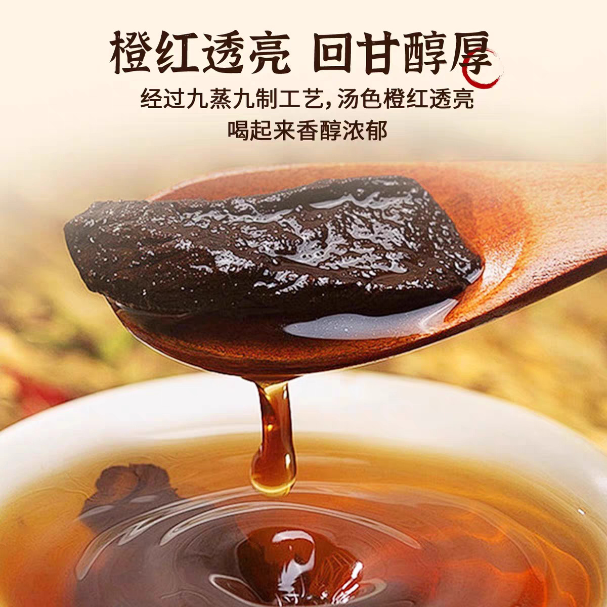 Плод полигонатума, девять раз пропаренный и девять раз сушеный, мясо полигонатума, замоченное в воде и вине, готовое к употреблению, вакуумная упаковка поштучно