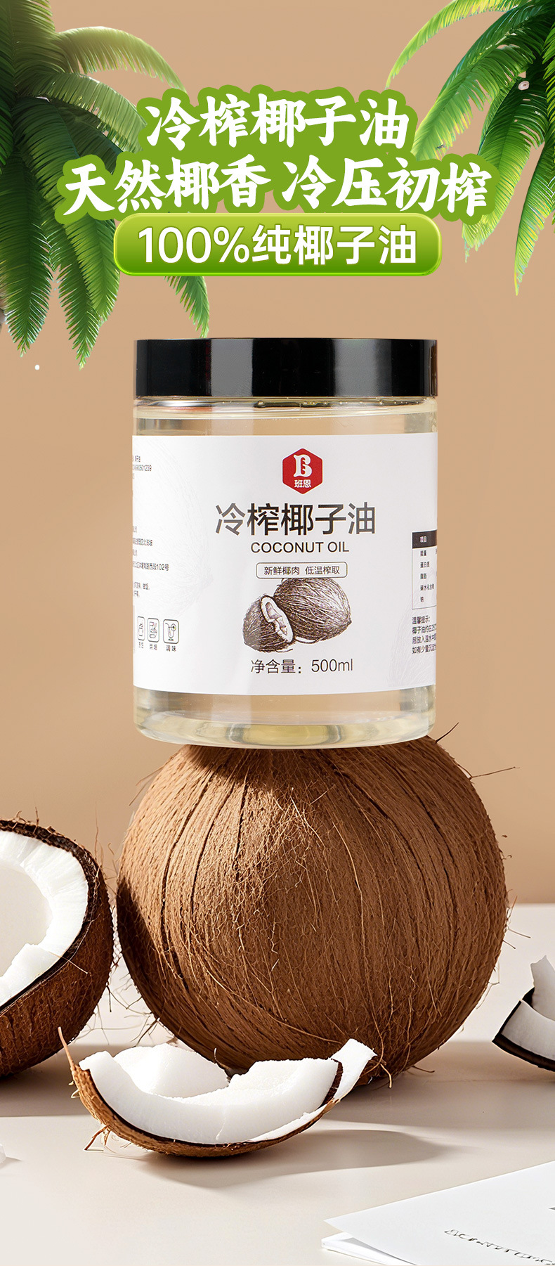 Banen Кокосовое масло холодного отжима, для выпечки