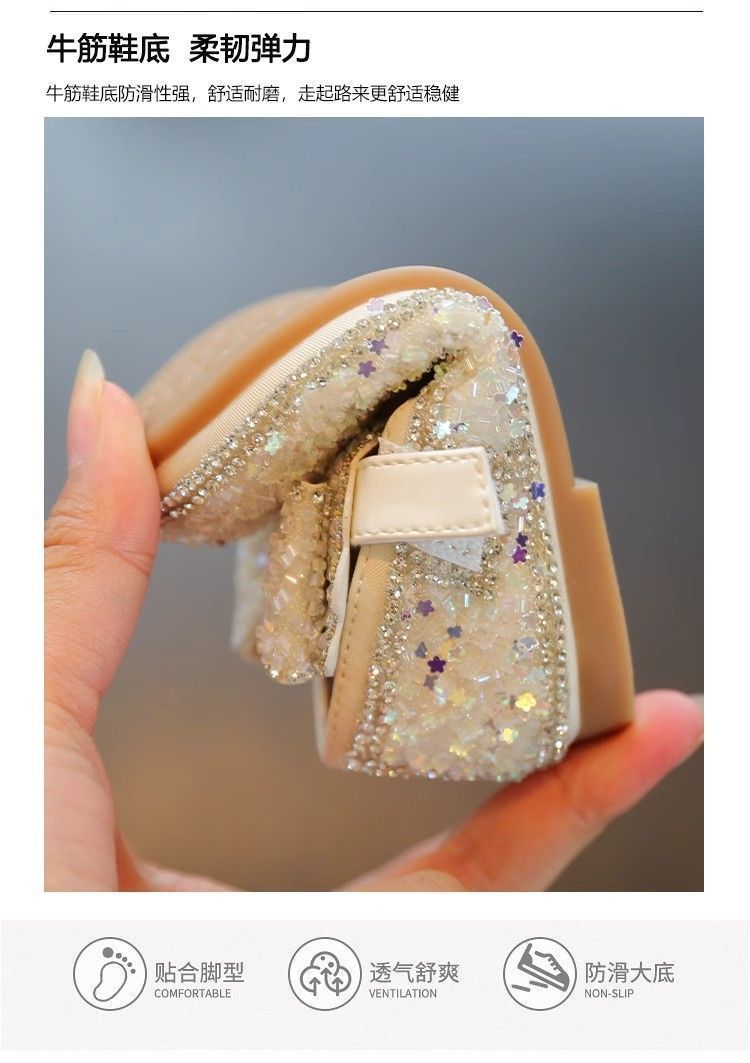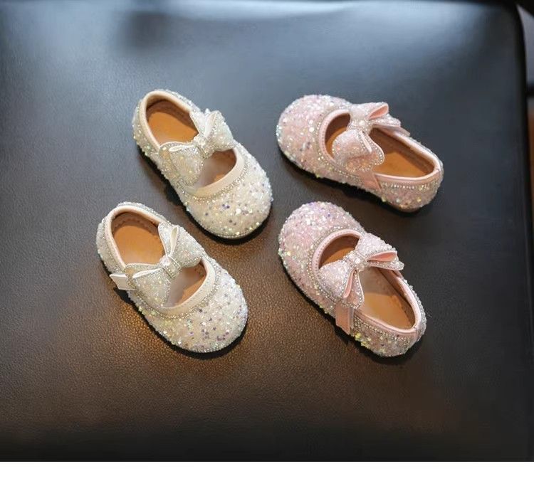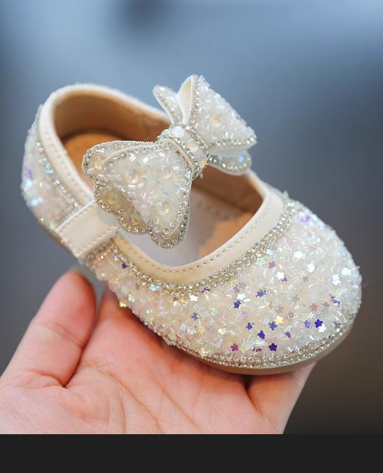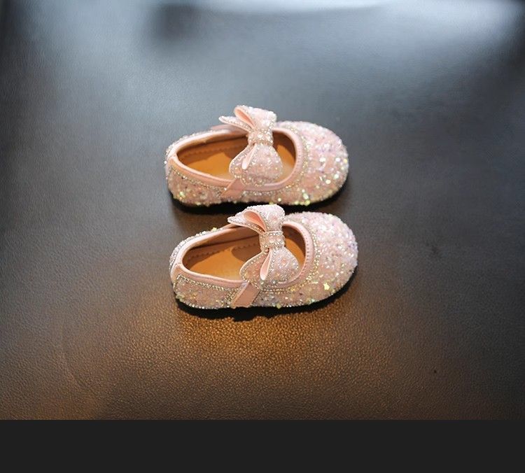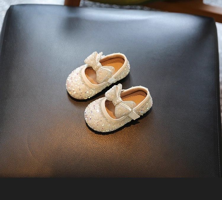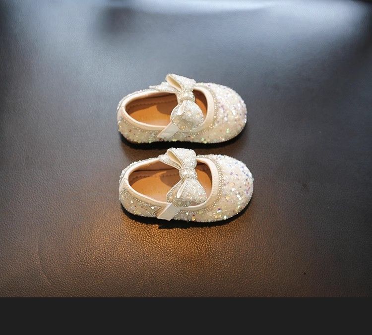 Обувь для малышей 2025 Новые Весна и Осень Мягкие туфли с бантом Кристальные туфли для девочек Кожаные туфли