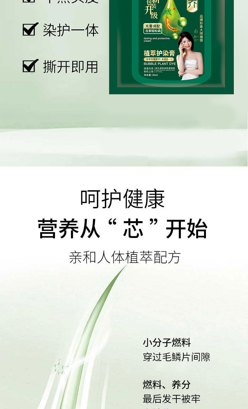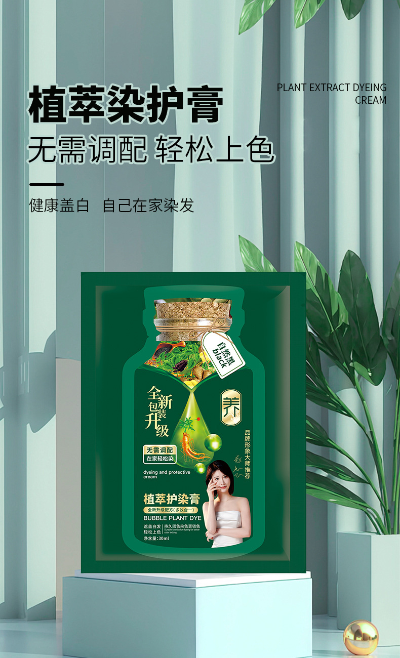 Оптовая продажа 30 мл пакетированная зеленая экстрактная пена для волос, растительная, не повреждающая, не оставляющая пятен