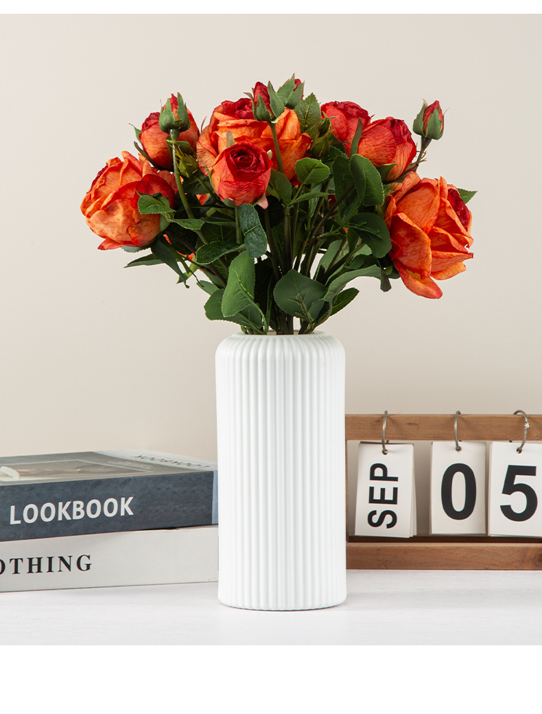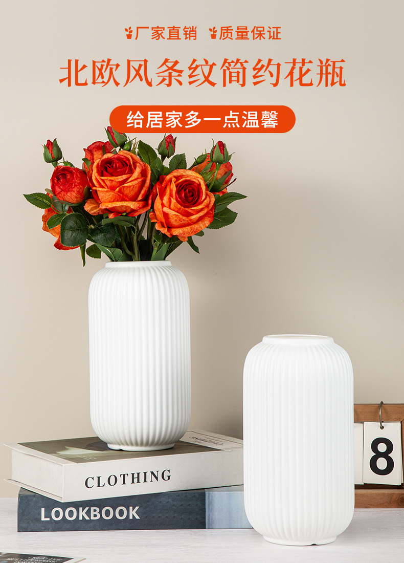 Гидропонная ваза для цветов белого цвета с вертикальным узором, имитация керамической вазы, современная простая пластиковая ваза для аранжировки цветов и декоративных предметов