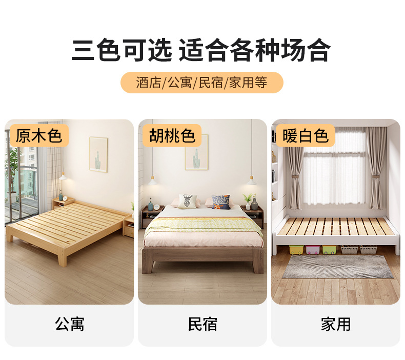 Кровать из массива дерева без боковины 1.2/35/5/8м, панельная рама без спинки, Татами, рядная рама, двуспальная кровать