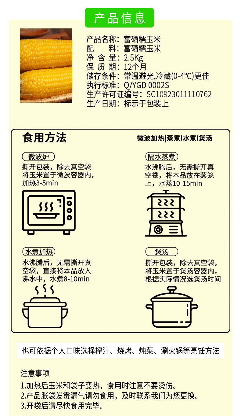 Селен-содержащая восковая кукуруза 10 упаковок 2.5кг свежая желтая восковая кукуруза в вакуумной упаковке с севера востока