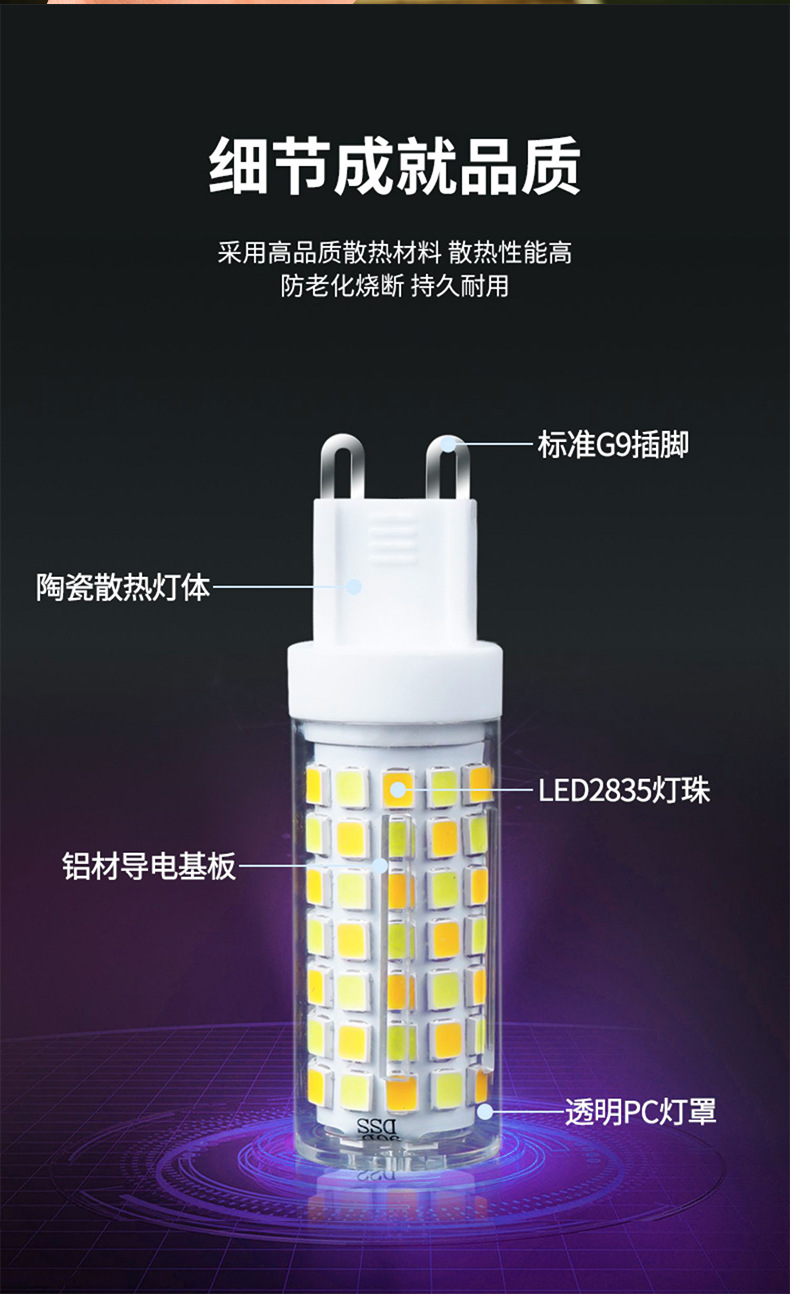 Прямые поставки с завода, полносветовой безмерцающий G9 кукурузная лампа, керамические лампочки G4, широкий диапазон напряжения, источник света для домашней люстры из кристаллов