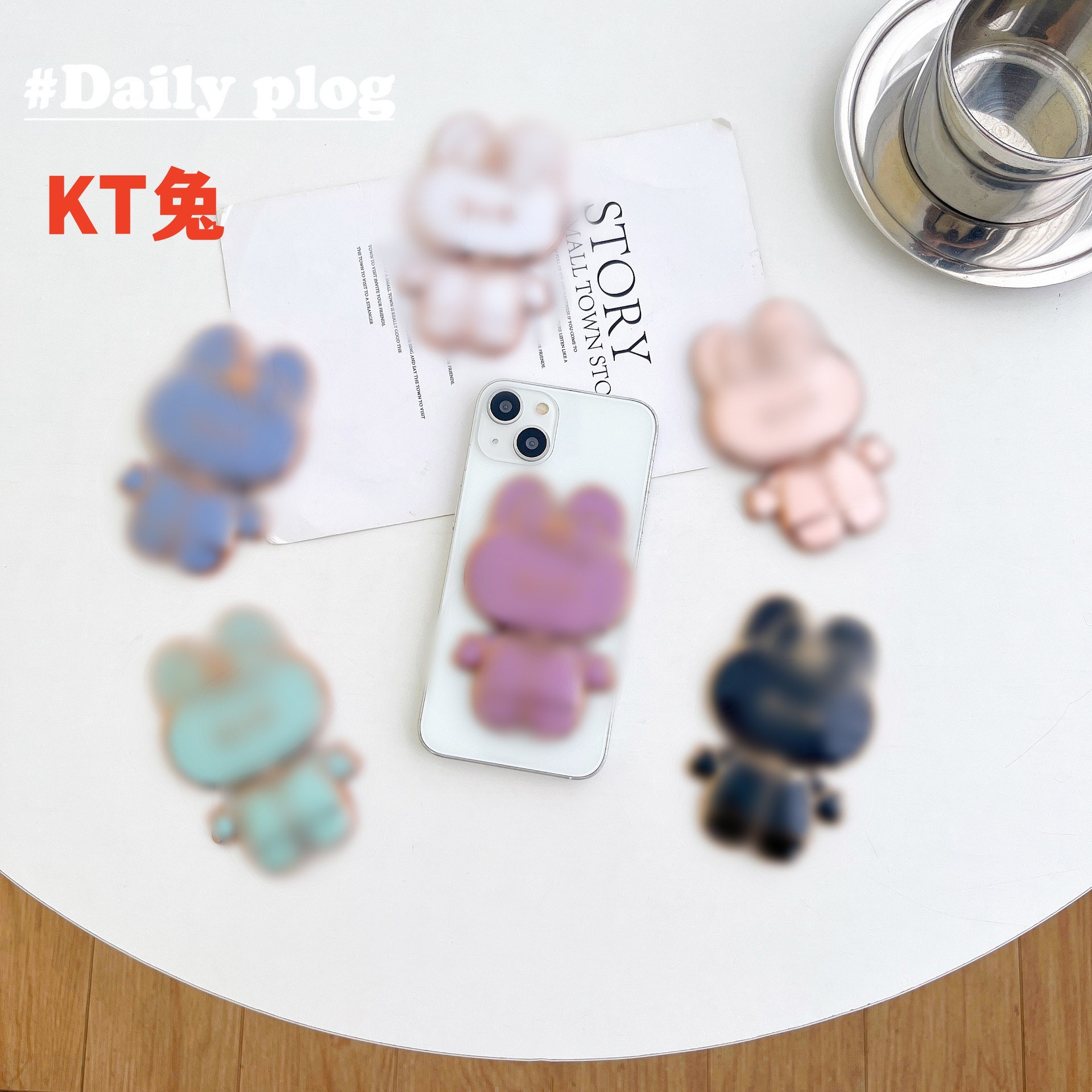 Милый мультяшный чехол для телефона Kt Rabbit с задним креплением, зеркалом для макияжа, портативная вращающаяся подставка, подставка для Douyin
