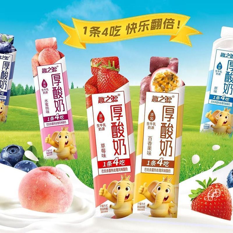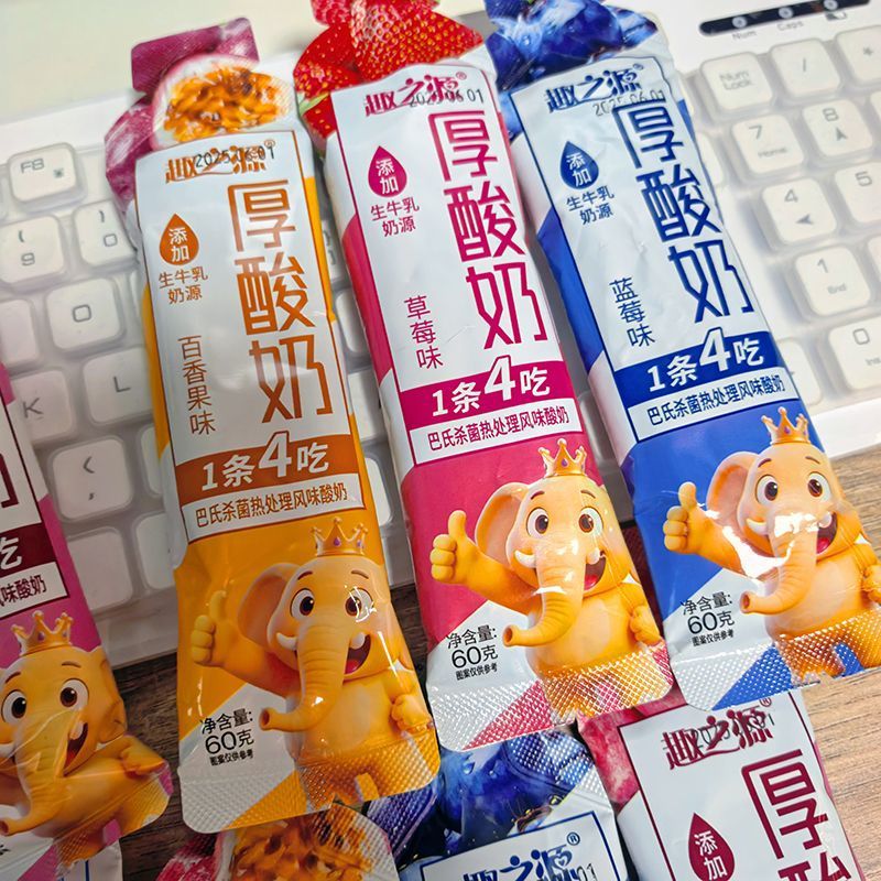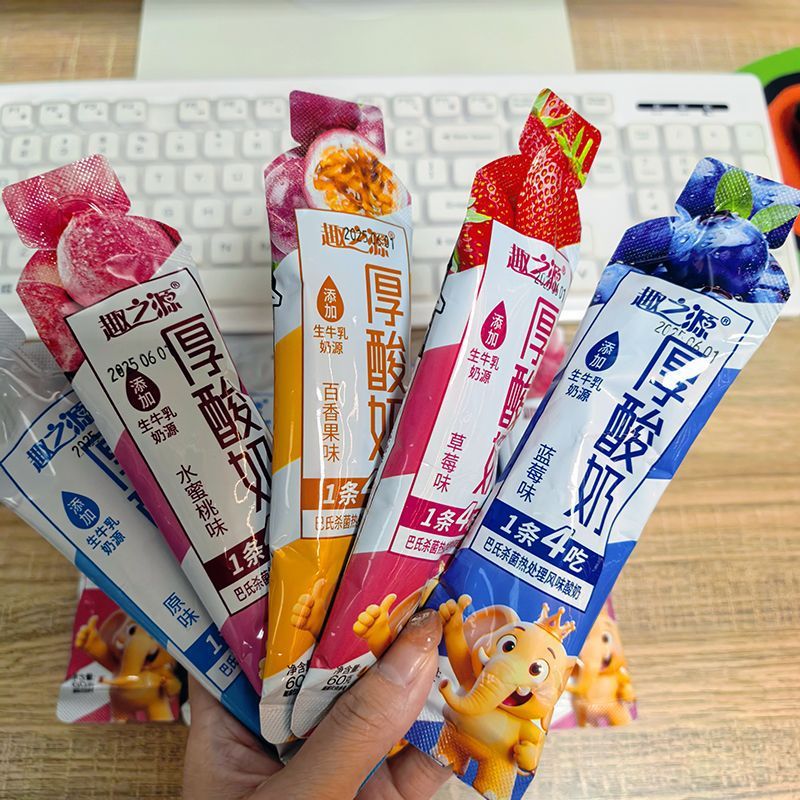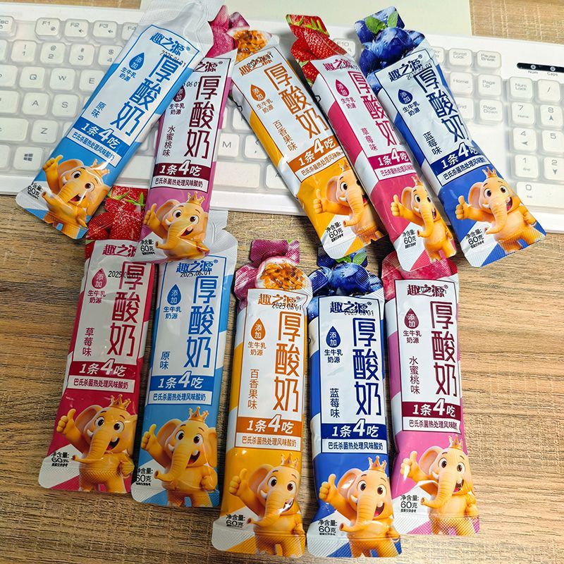Полосатый густой йогурт густое молоко пакетированный йогурт комнатной температуры ароматизированный йогурт детские завтраки закуски интернет-знаменитости 1 полоса 4 порции