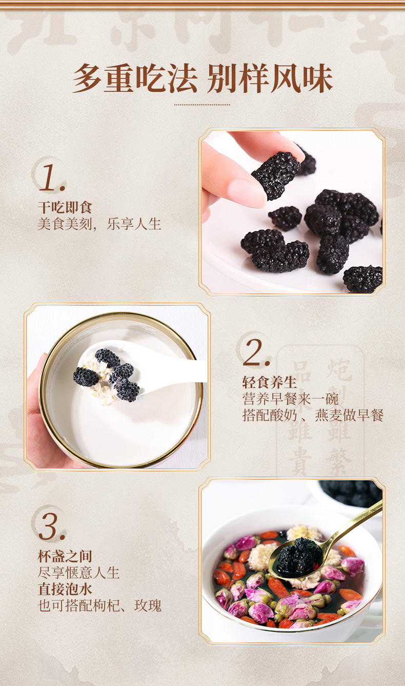 Пекин Тунжэньтанг Шелковица 250г Сушеные плоды шелковицы Семена шелковицы для чая Мгновенные 250г Семена шелковицы Черная шелковица
