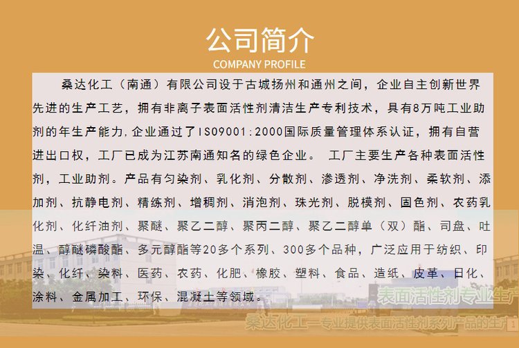 Жирная кислота полиоксиэтиленовый эфир A-105 Oeo-10, производитель Jiangsu Haian Sunda, завод-изготовитель