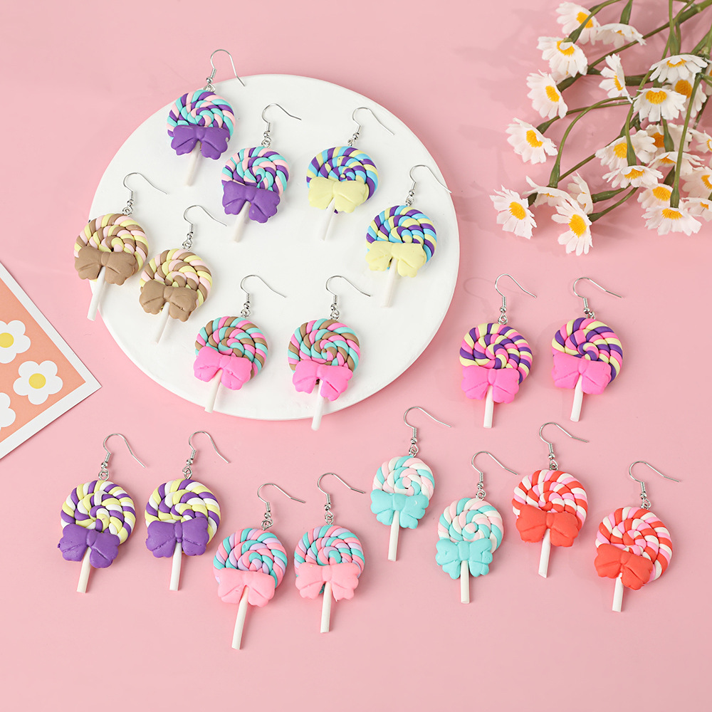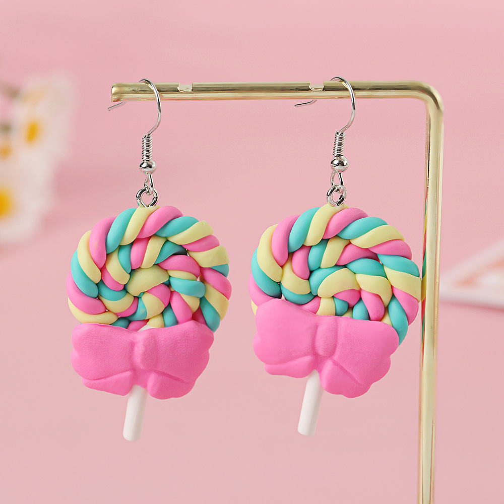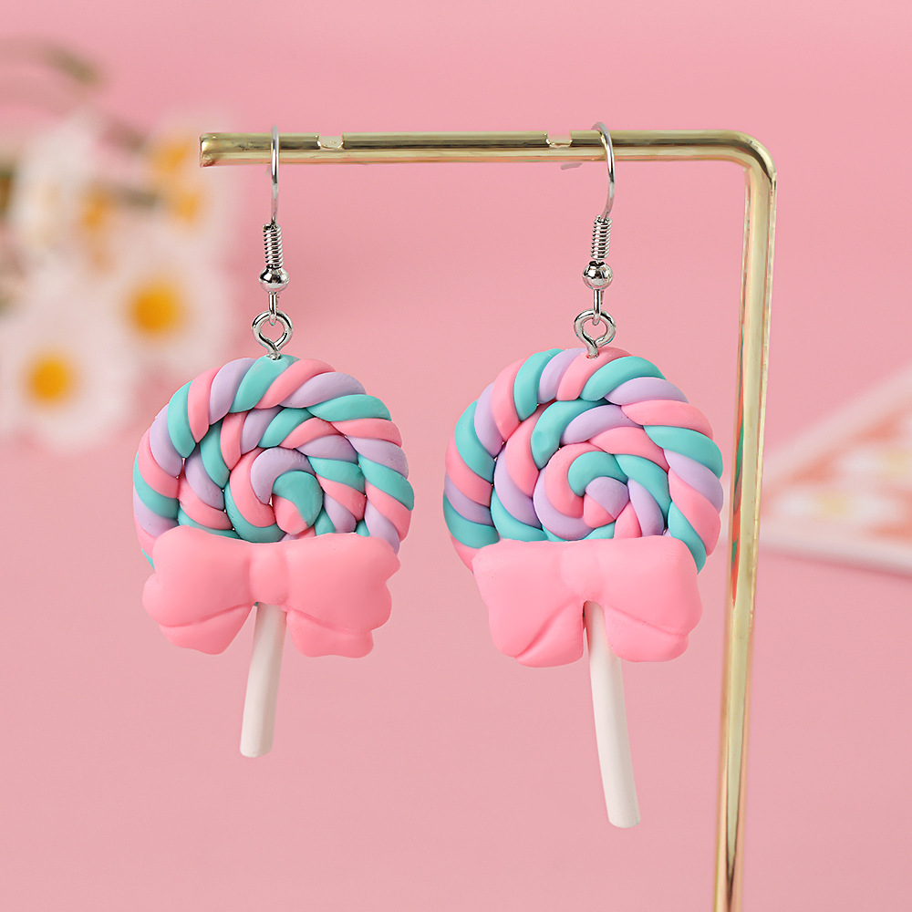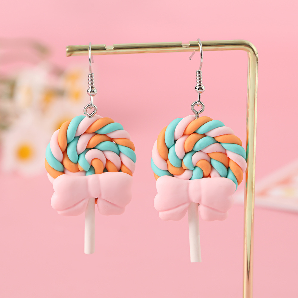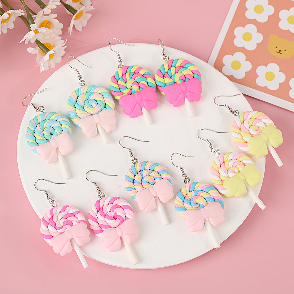 Яркие серьги в форме леденца с бантом, искусственные игрушки из пищи, мягкие керамические серьги для девочек