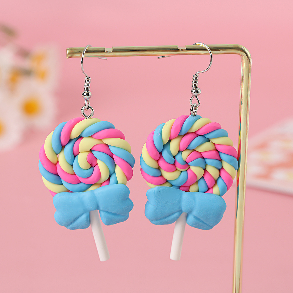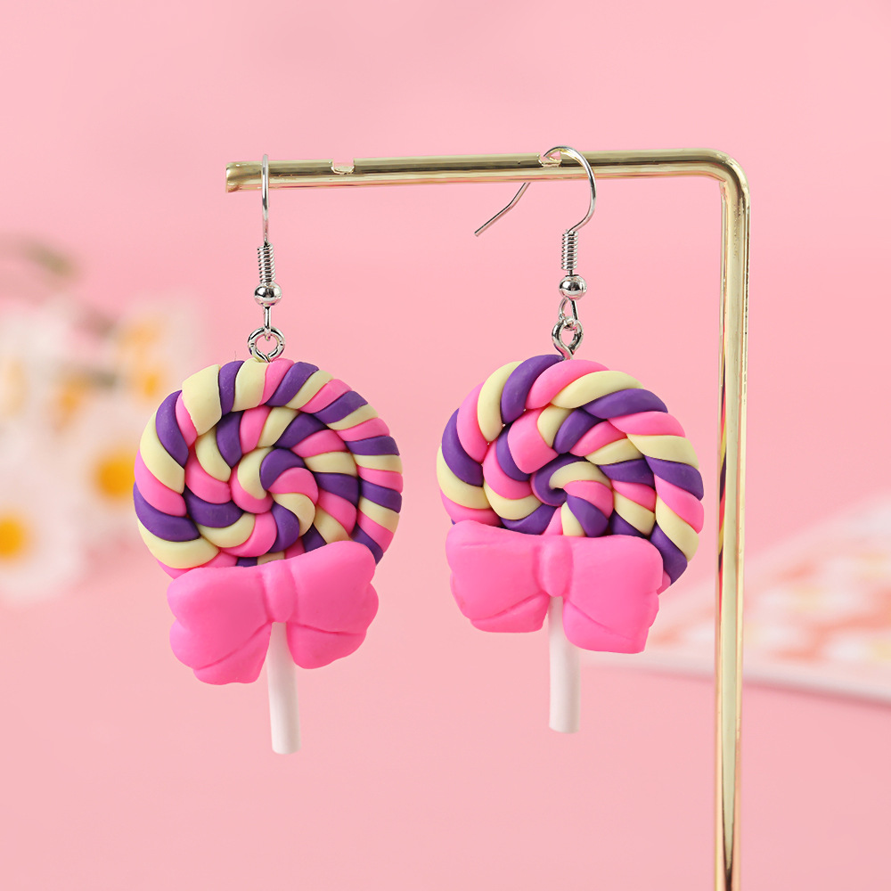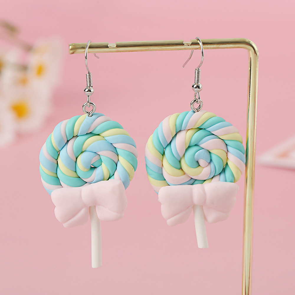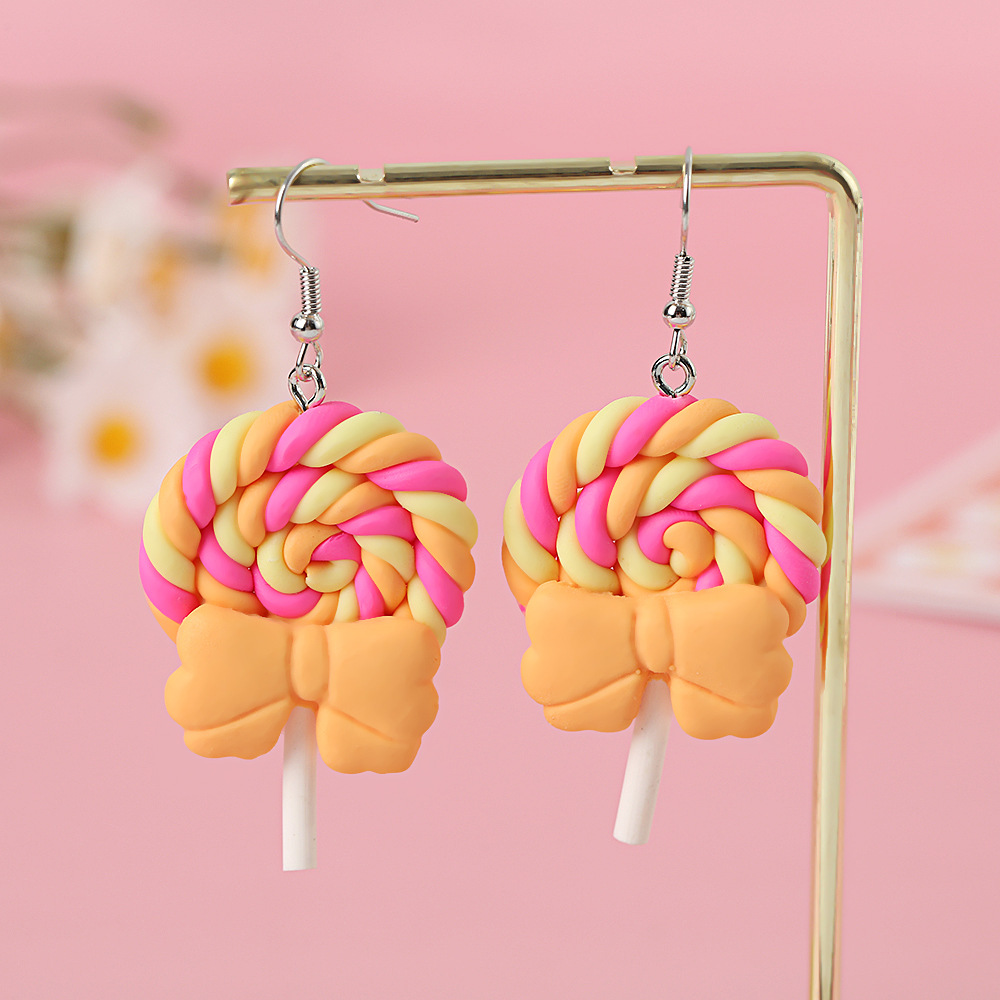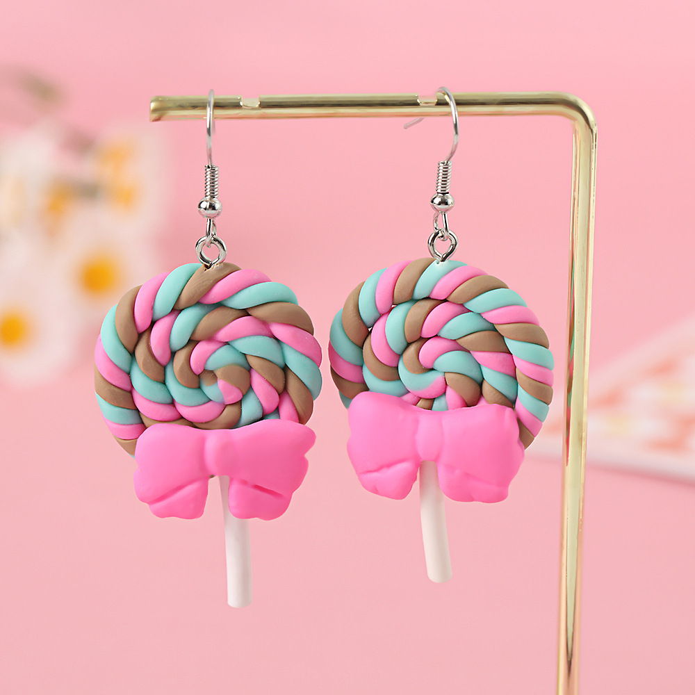 Яркие серьги в форме леденца с бантом, искусственные игрушки из пищи, мягкие керамические серьги для девочек