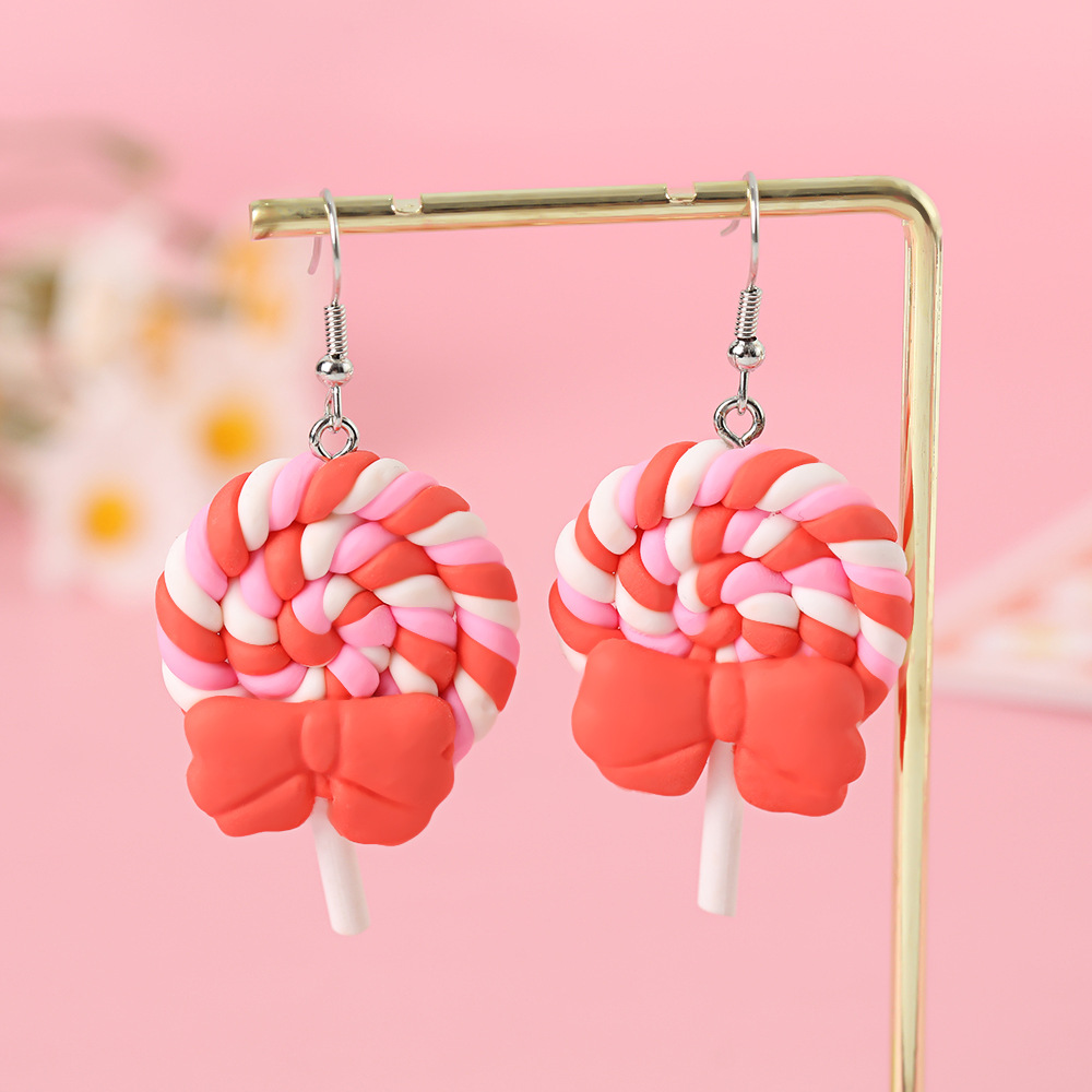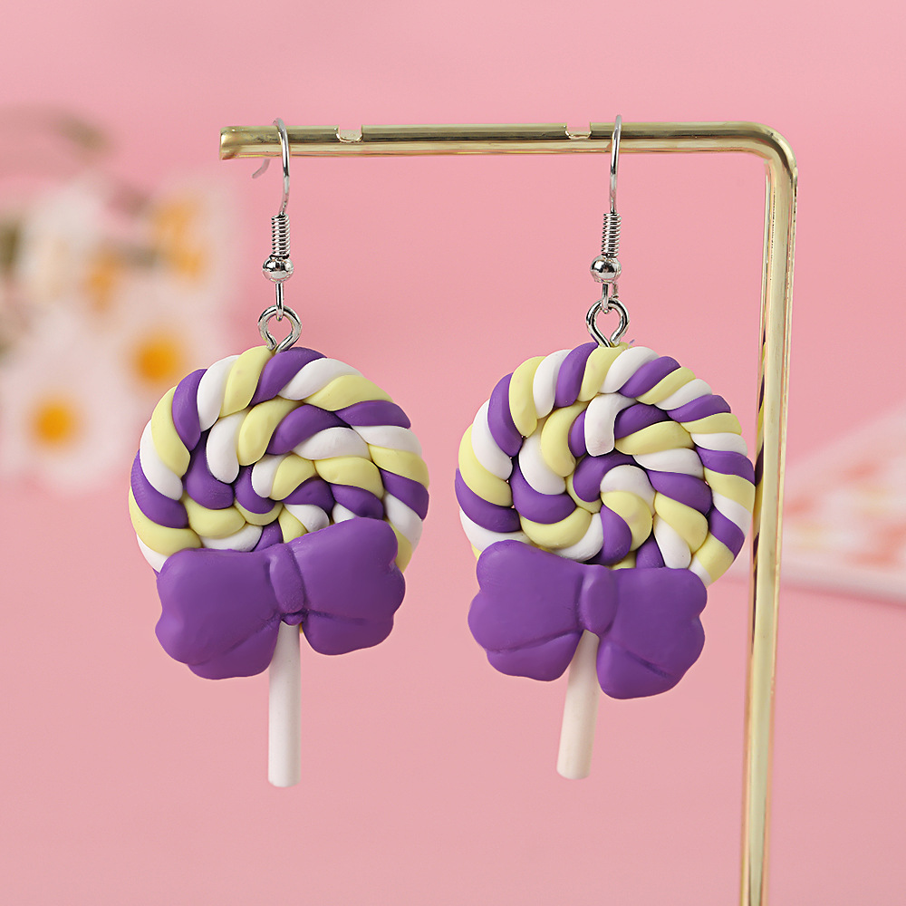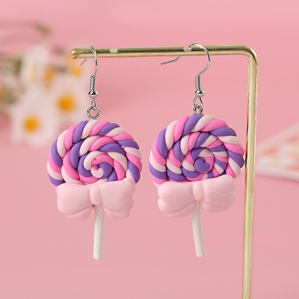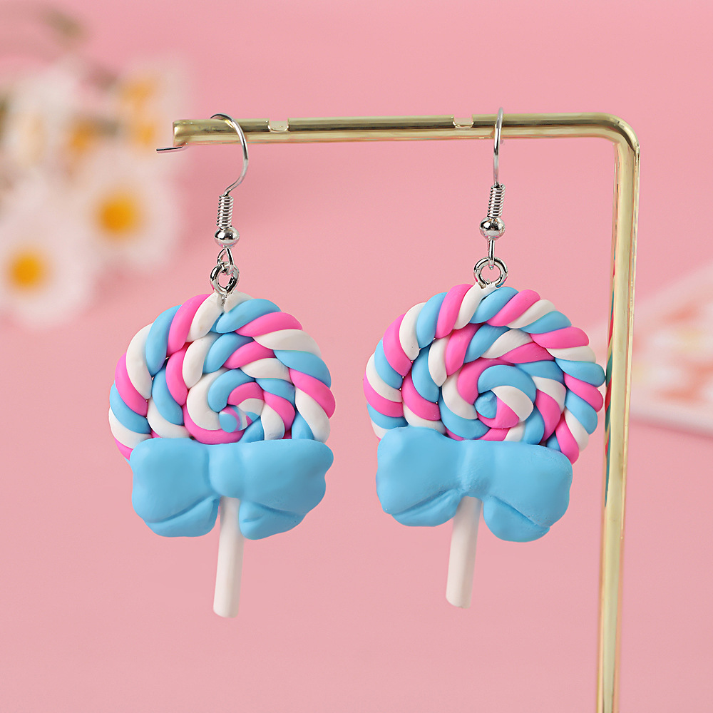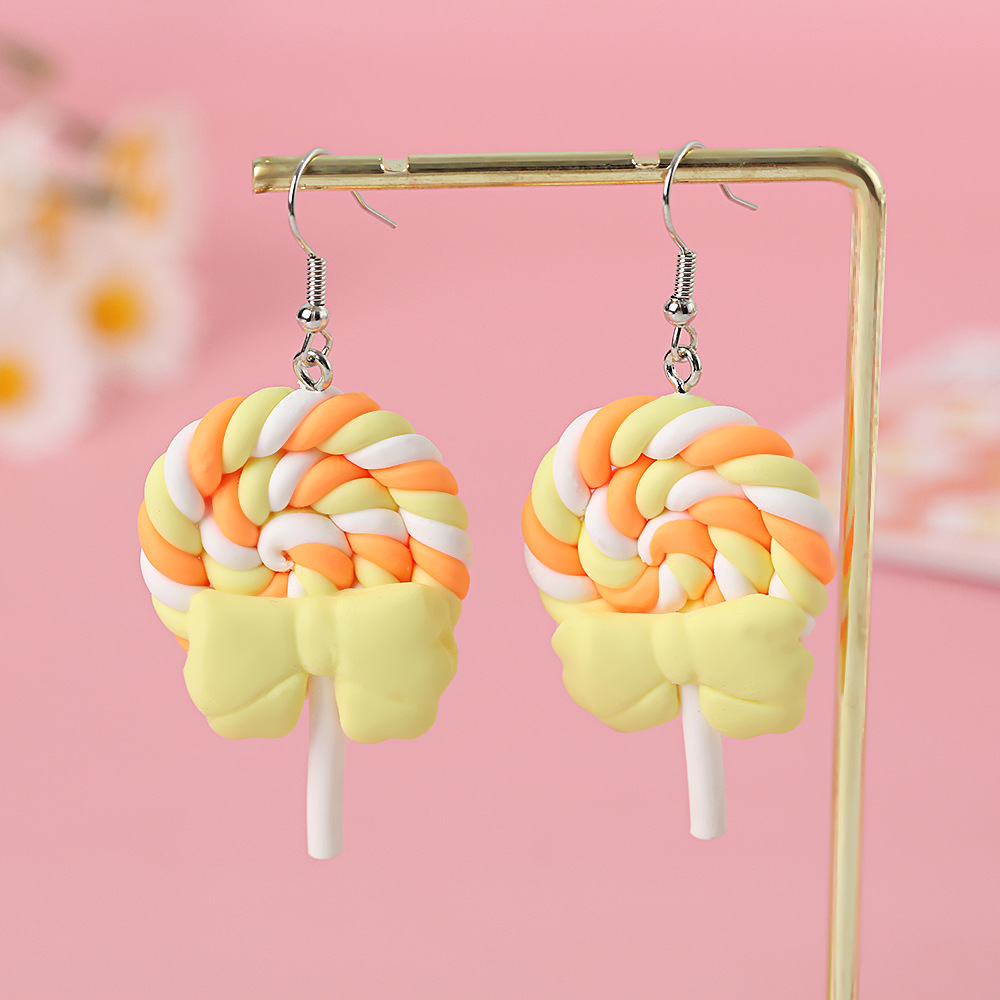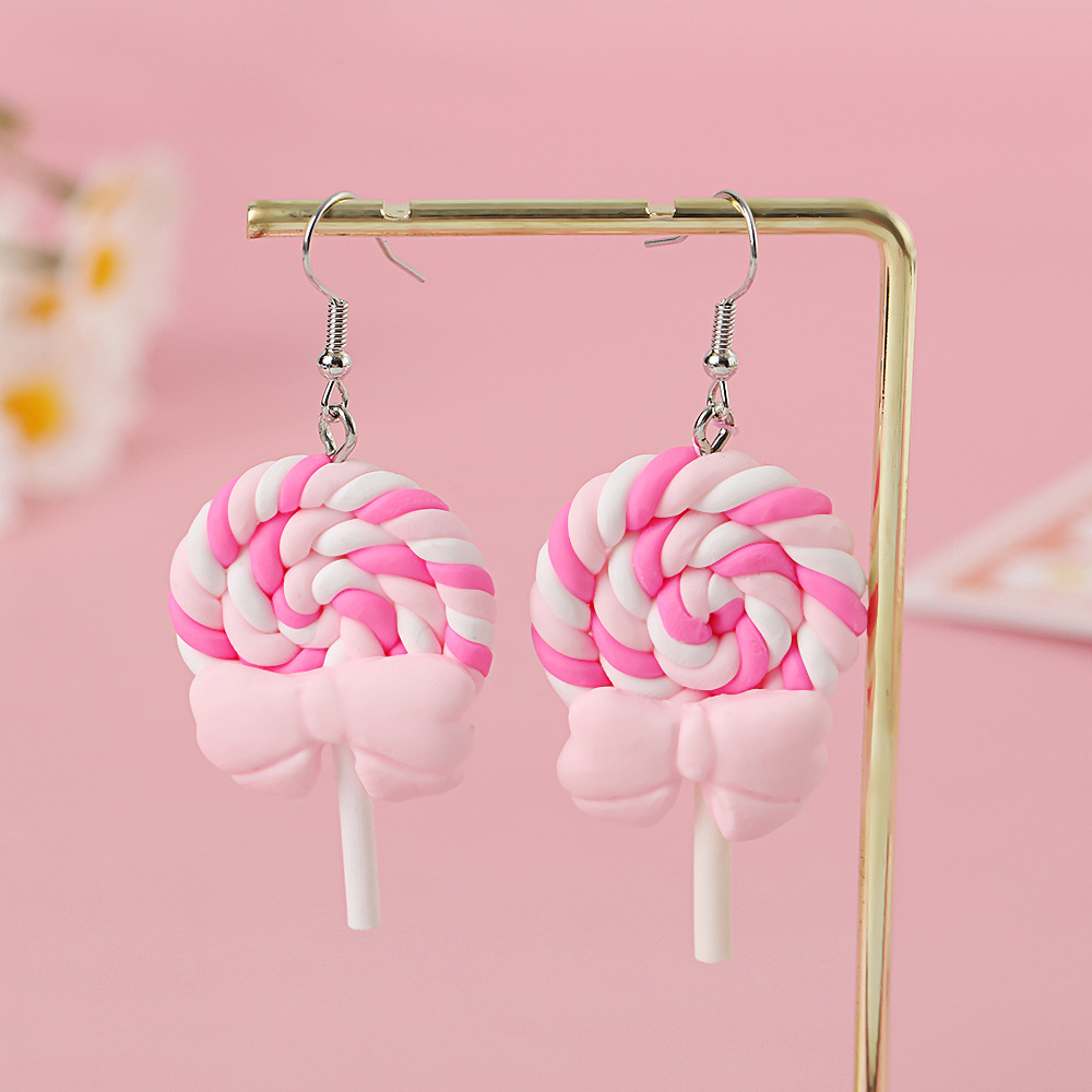 Яркие серьги в форме леденца с бантом, искусственные игрушки из пищи, мягкие керамические серьги для девочек