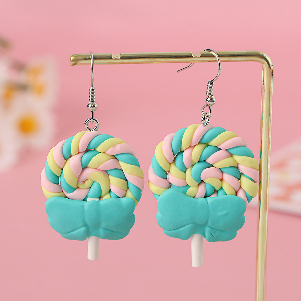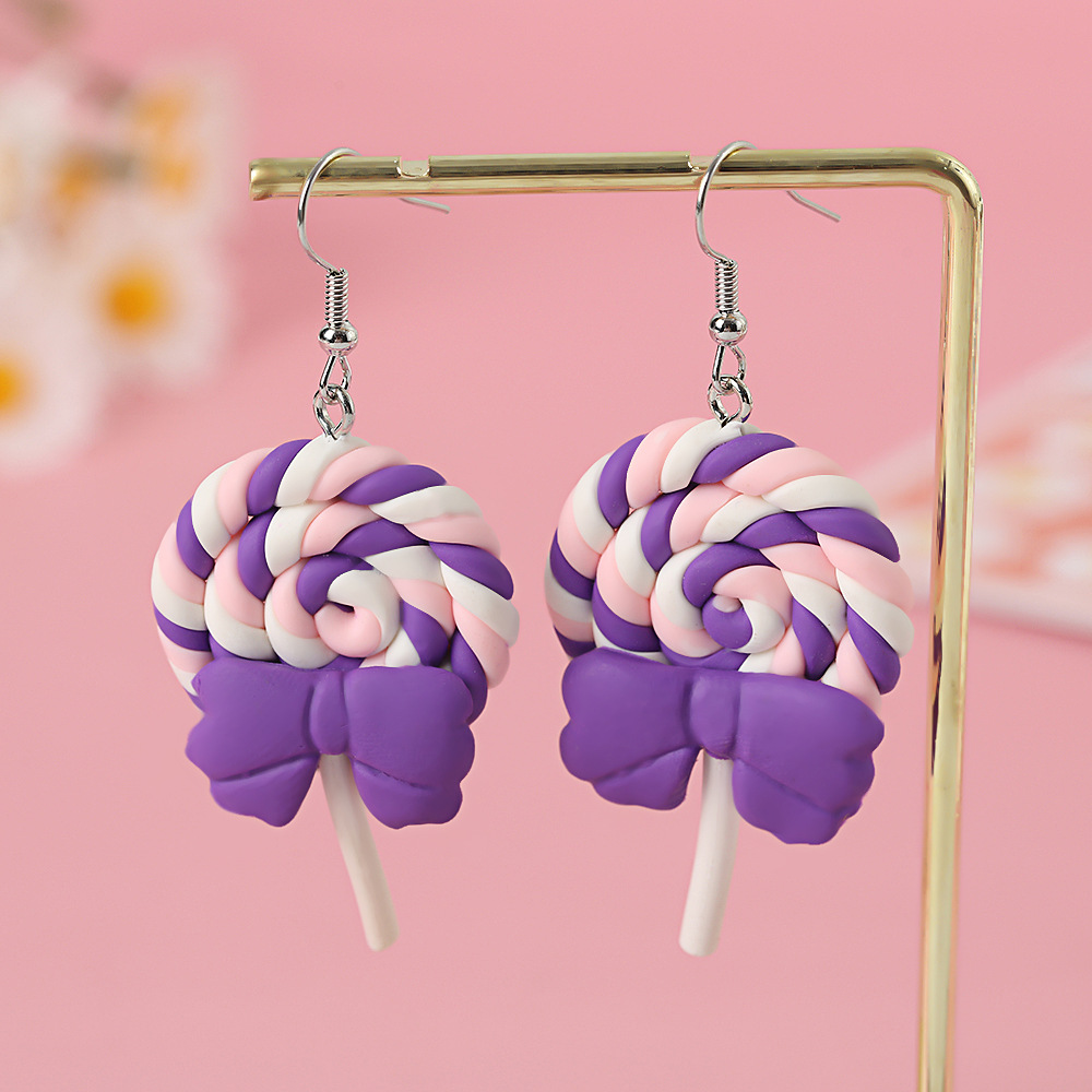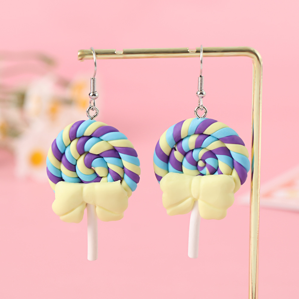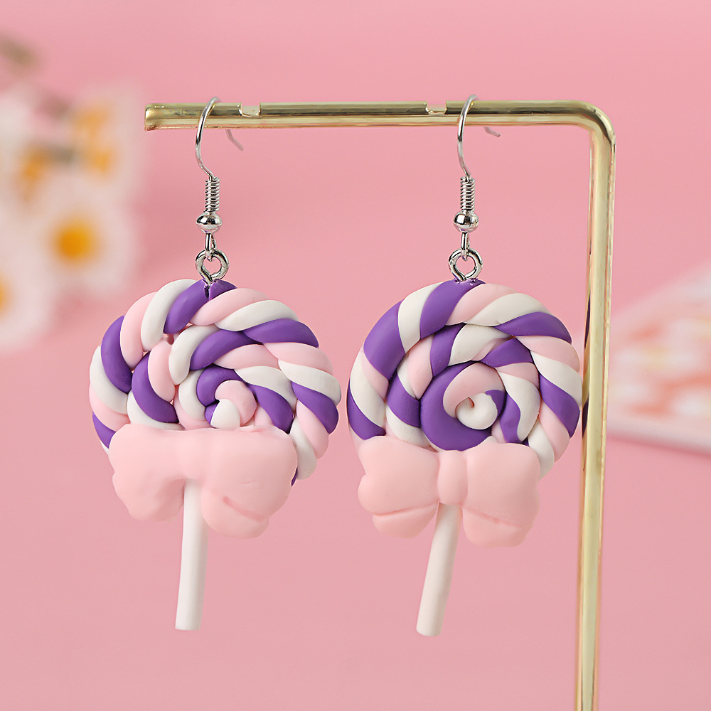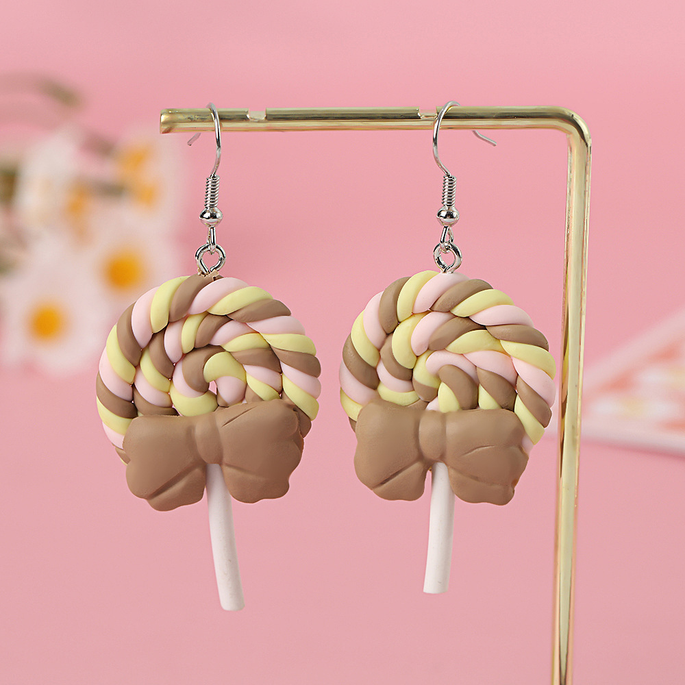 Яркие серьги в форме леденца с бантом, искусственные игрушки из пищи, мягкие керамические серьги для девочек