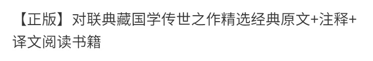 ![[Authentic] Couplets Collection of Chinese Classics Selected Classic Original Texts + Annotations + Translation Reading Books](/api/image?url=https%3A%2F%2Fcbu01.alicdn.com%2Fimg%2Fibank%2FO1CN01yxgSZW1eoxFOAIsXH_!!2215532523919-0-cib.jpg)