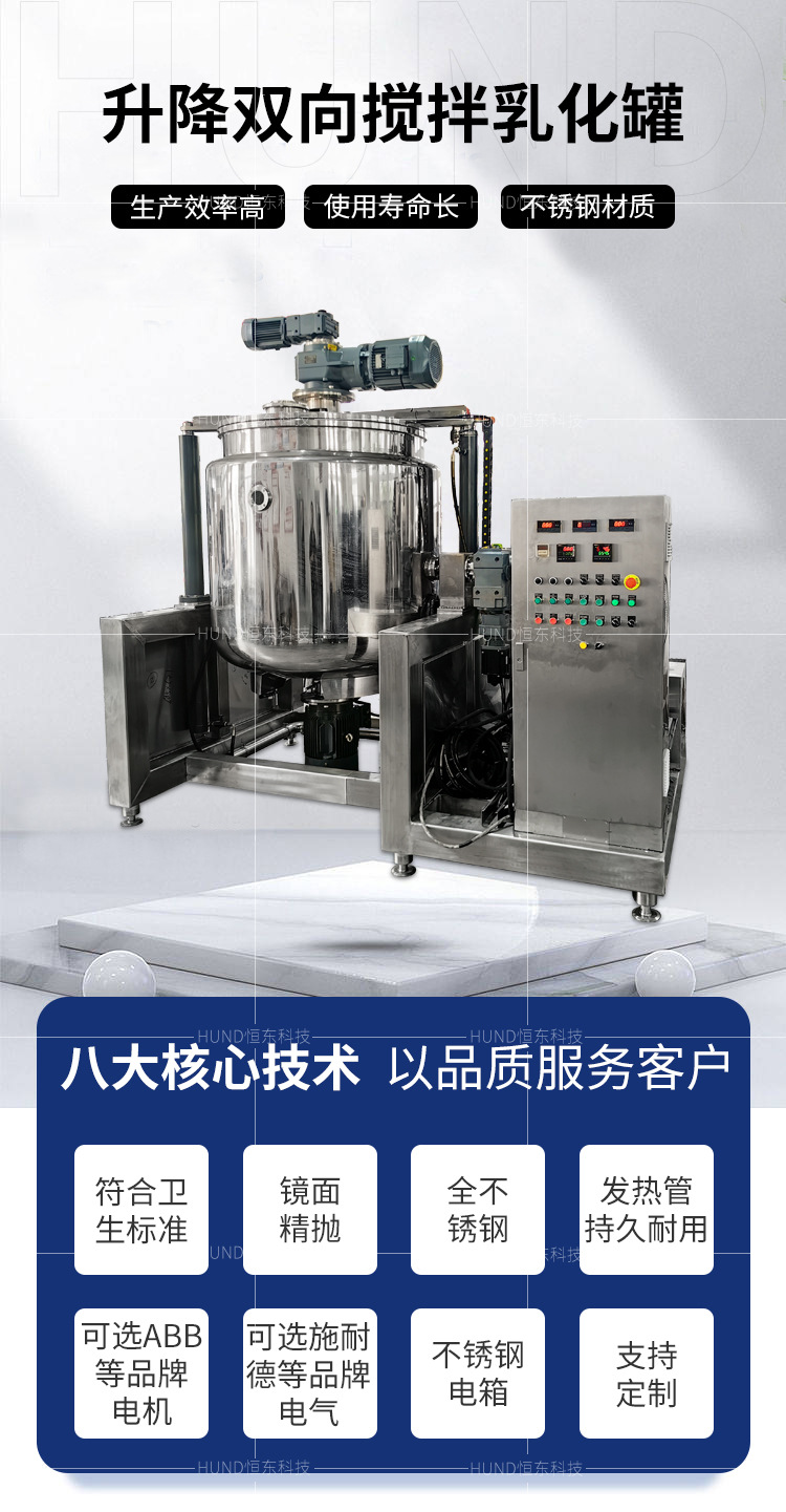 Электрический подъемный двухсторонний эмульсионный танк с высоким сдвигом для косметики и химических реакций