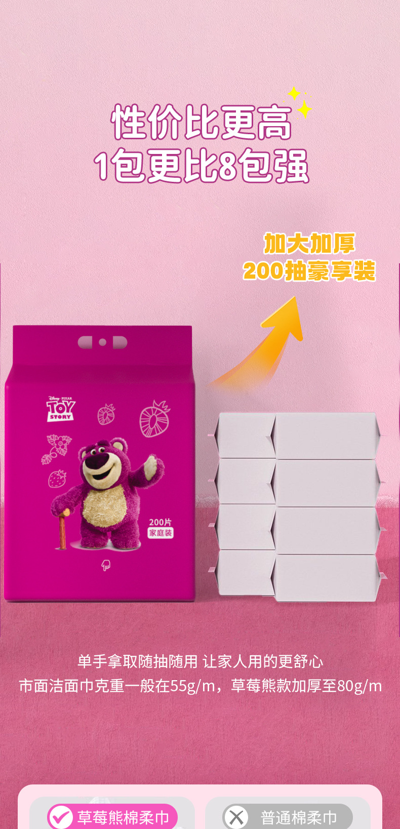 Полотенце для лица с клубничным медведем Disney, одноразовое, для очищения, съемное, утолщенное, для снятия макияжа