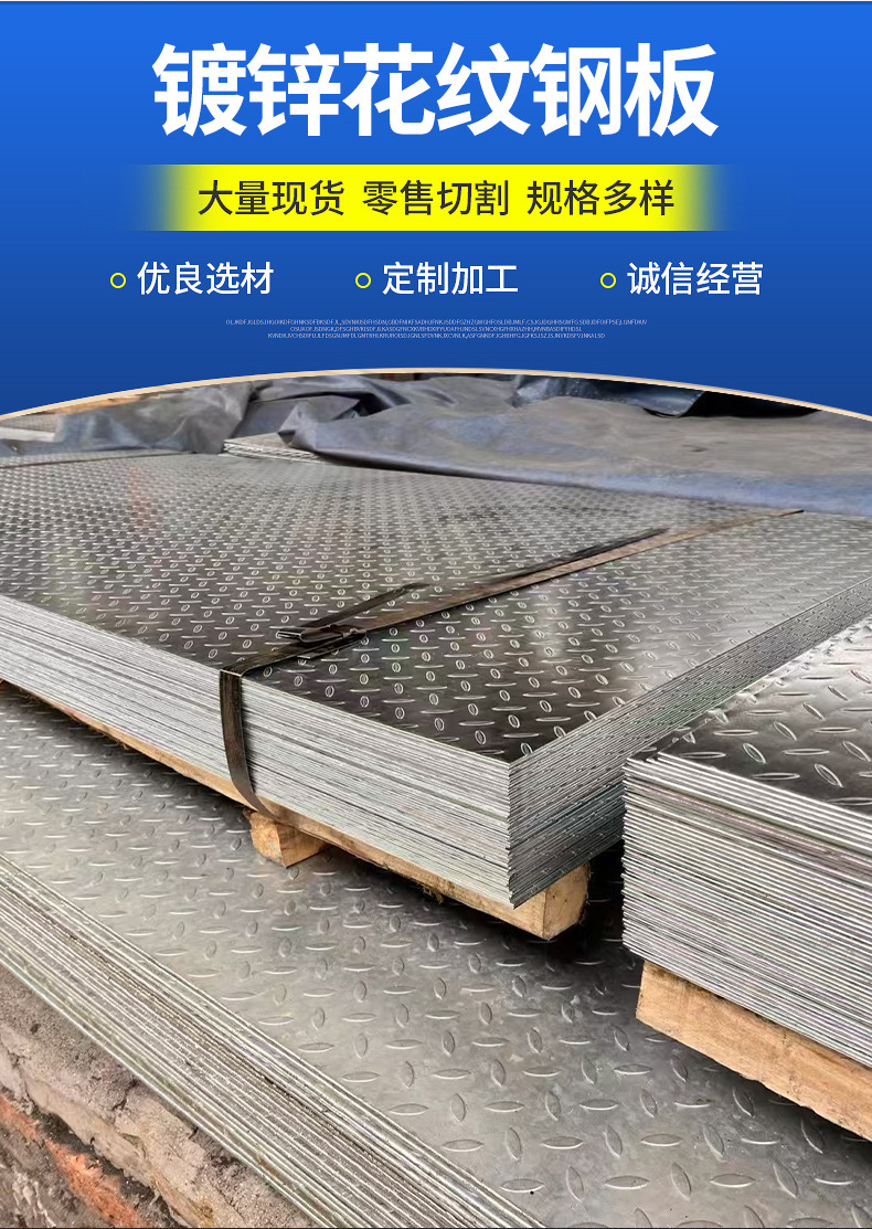 Галванизированная рифленая пластина Q235B противоскользящая износостойкая горячекатаная пластина с рифлением, полные спецификации, можно резать