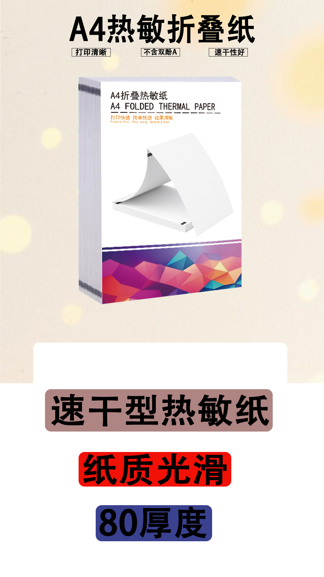 ![]() | A4 thermal folding printing paper (100 sheets) | 210mmx297mm | 1шт: ¥10.88, 100шт: ¥10.56, 500шт: ¥10.08 | 2175 | 6006096910056 |