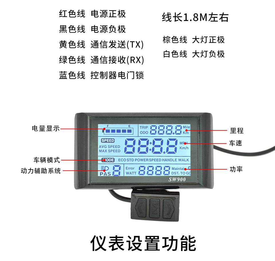 无通信状态(由仪表控制):当实际速度超过我们设置的速度时,仪表将关闭PWM输出;当低于我们设定的速度时,仪表会自动开启PWM输出,行驶速度为±1公里/小时;(速度限制适用于PAS,而非油门)