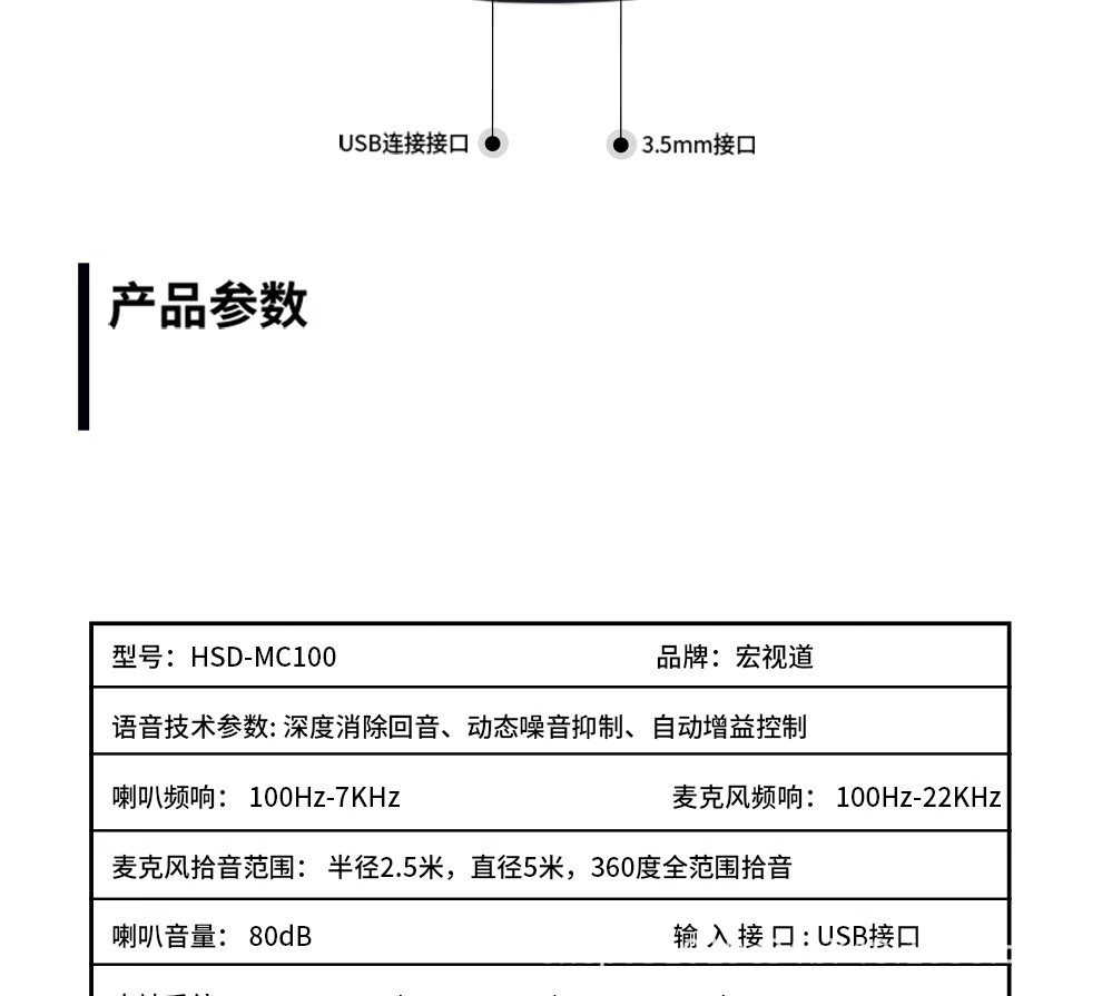 Hongshidao Видеоконференц Омнинаправленный Микрофон Hsd-Mc100Usb Без Драйвера, Подходит Для Конференц Залов Площадью 30 Квадратных Метров, Высокое Разрешение