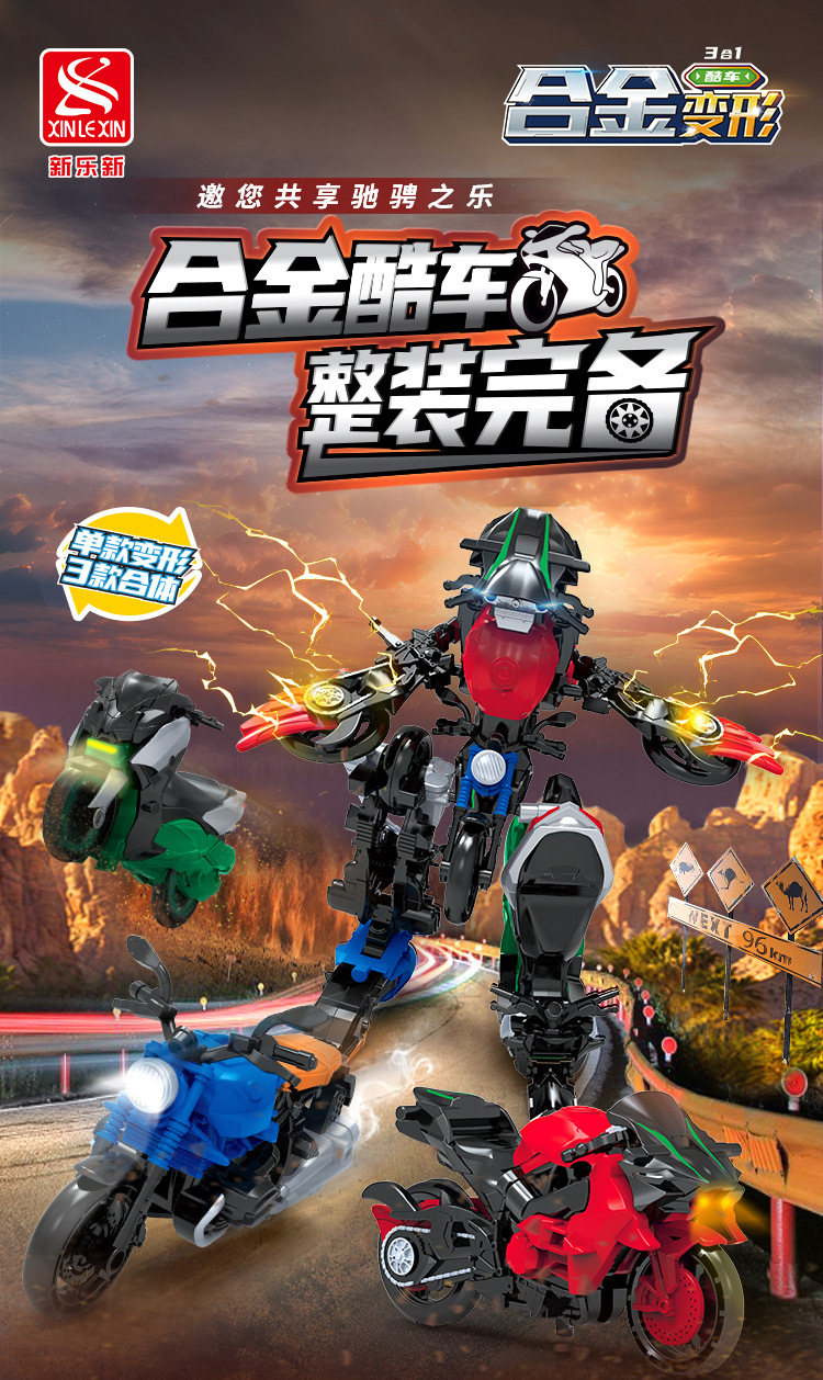 Игрушка-трансформер для детей Xinle Xin Alloy Cool Car Motorcycle Mecha три в одном, анимационные аксессуары для мальчиков и девочек
