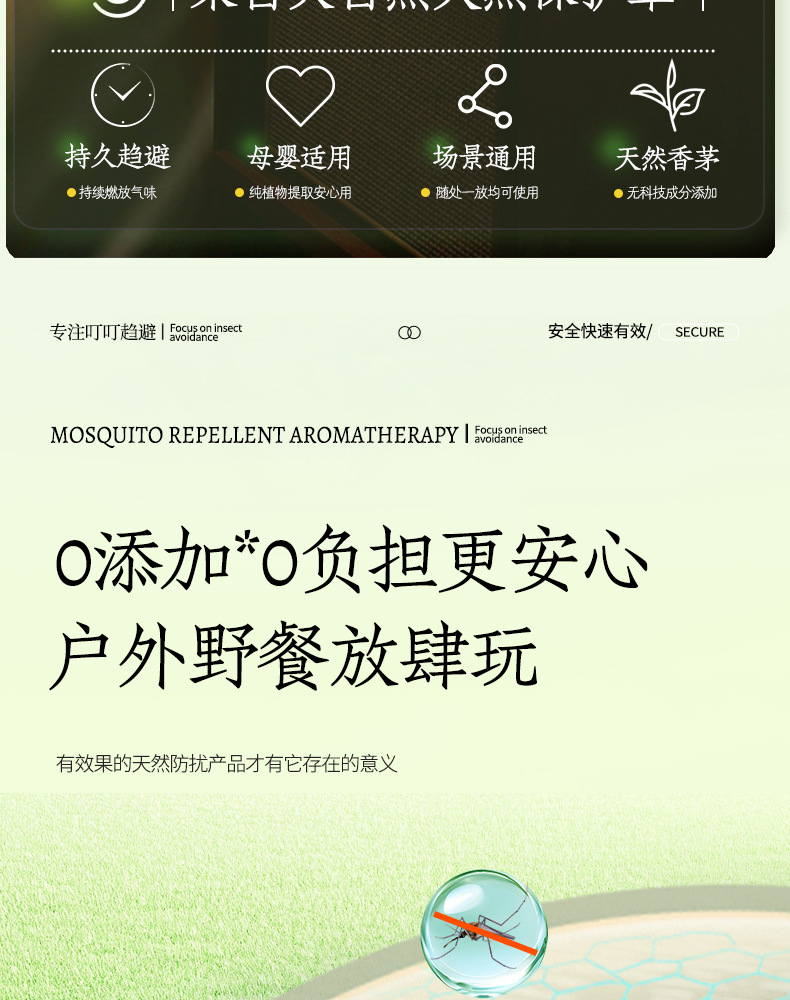 Эфирное масло для ароматерапии, палочка с цитронеллой, против насекомых, для кемпинга и дома, без пестицидов