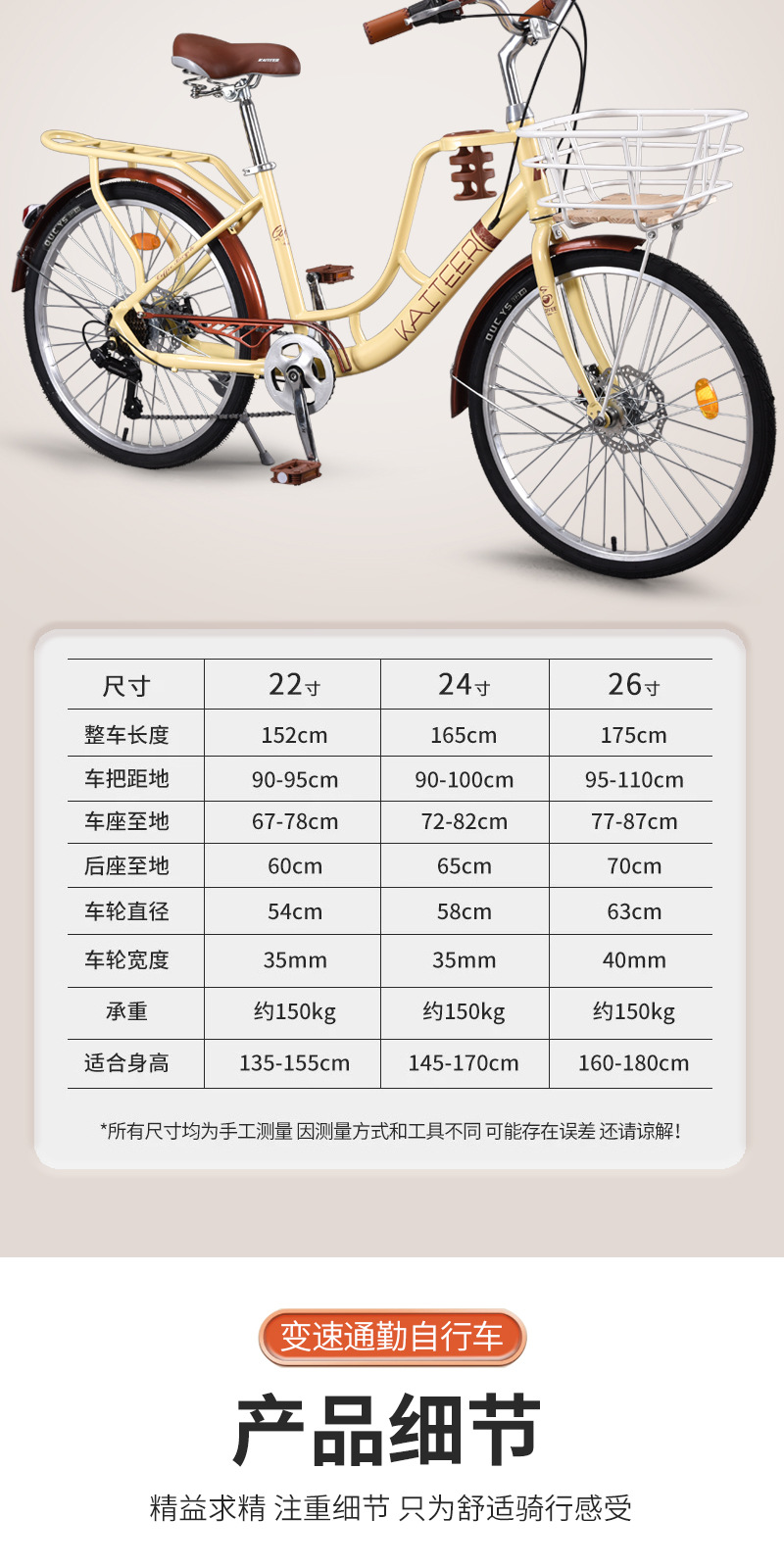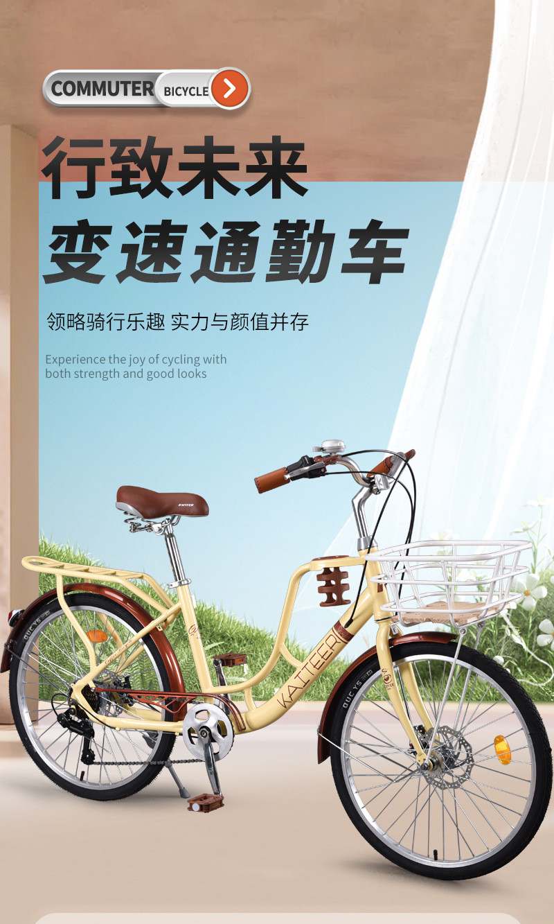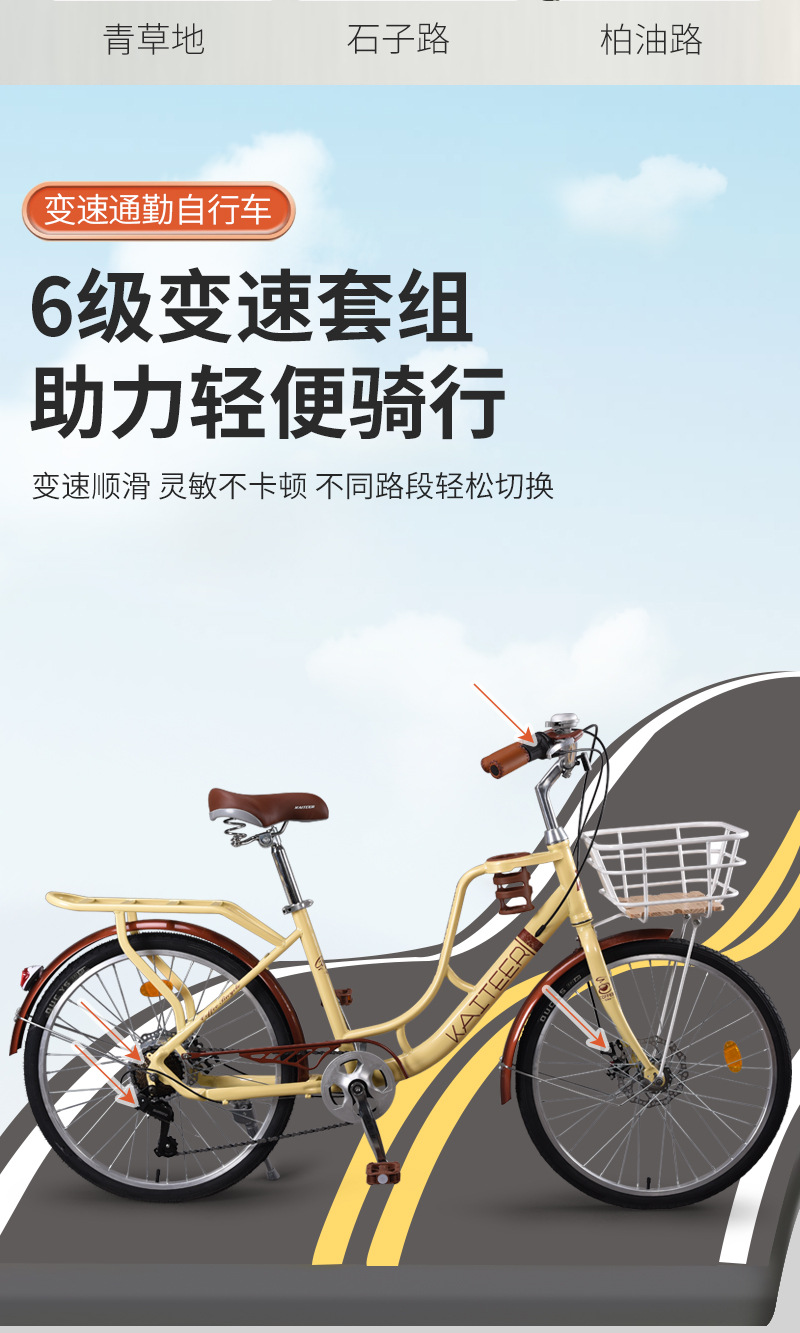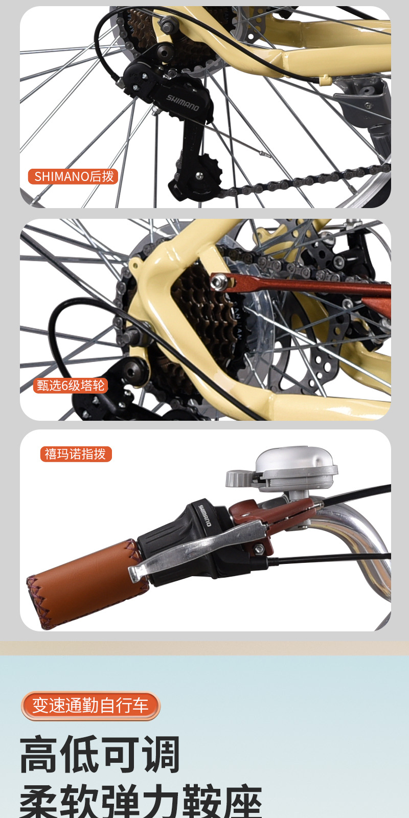 Ретро велосипед с переменной скоростью для женщин, взрослый кофе велосипед, легкий, 26 дюймов для городских поездок, 24 дюйма для поездок