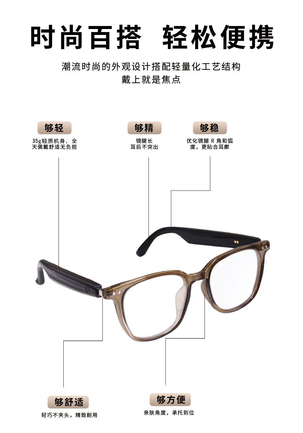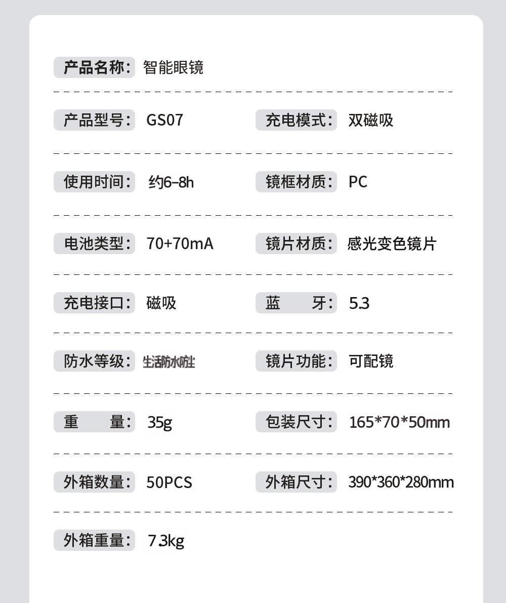Список упаковки Bluetooth glasses, rag, manual, data cable, warning sign