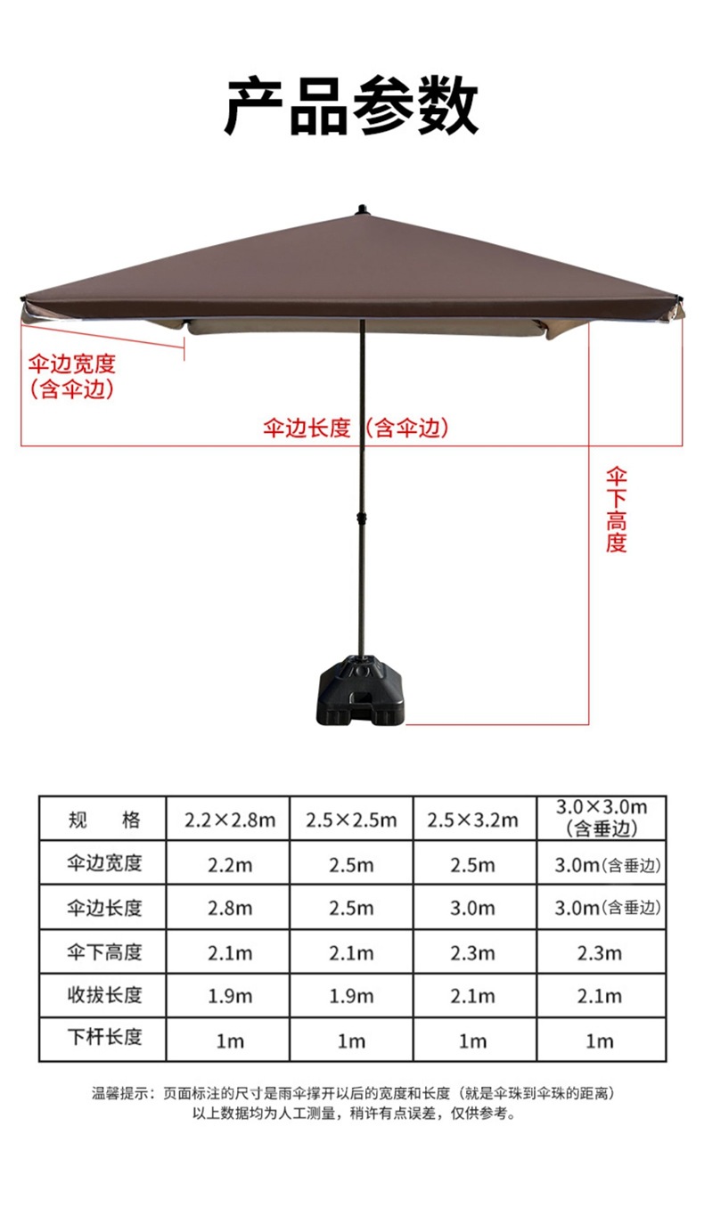 Уличный зонт для торговых точек, большой зонт для двора, утолщенный коммерческий зонт, большой квадратный зонт, навес