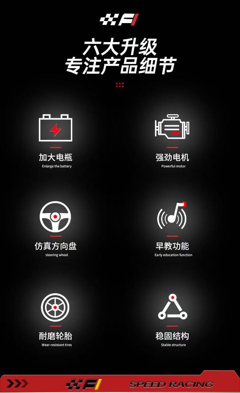 ![]() | Cool black + 6v4.5 battery + 380 motor + music early education story + led light + body lights | 2шт: ¥95.00, 50шт: ¥92.00, 100шт: ¥90.00 | 488 | 6004893486897 |