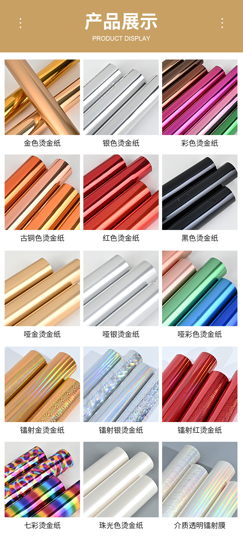 Цветная серия электрохимической алюминиевой бумаги для горячего тиснения, пленка для горячего тиснения, пластиковая бумага для горячего тиснения, упаковочный материал, устойчивый к трению, индивидуальная настройка