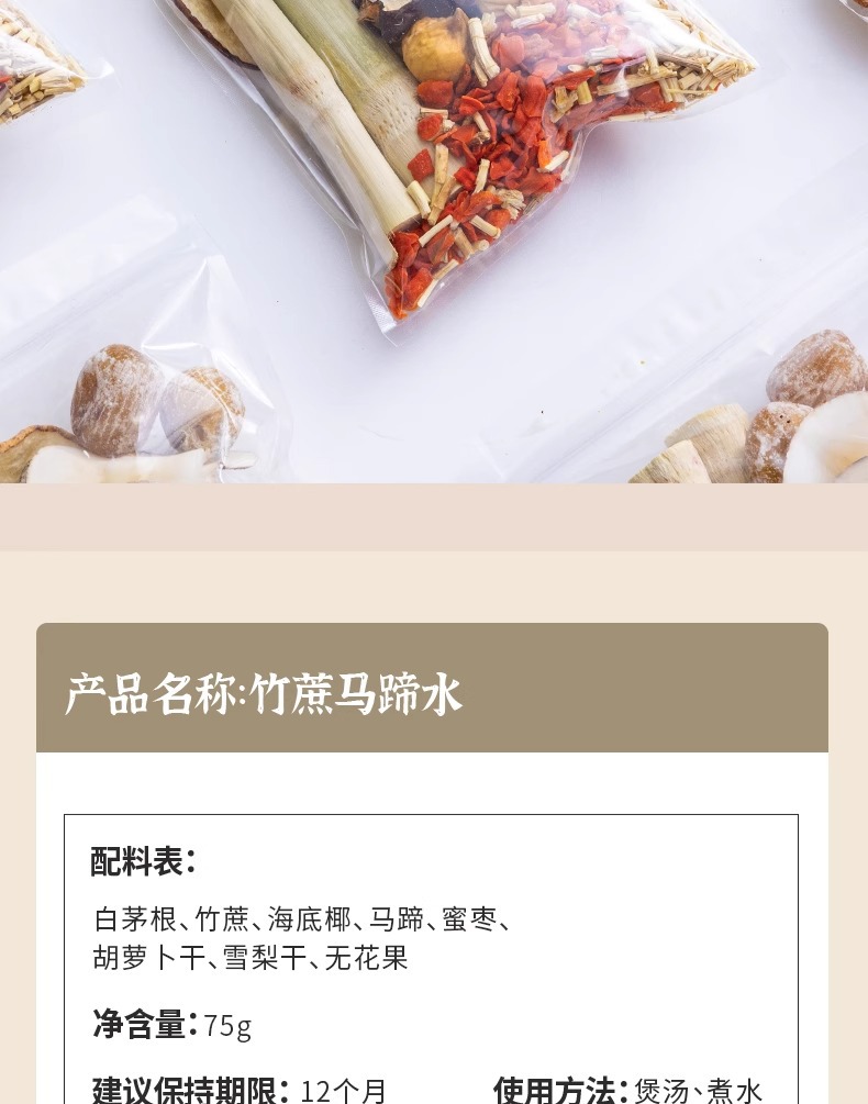 📦 | Bamboo cane grass root water 75g/pack | 1шт: ¥10.00, 5шт: ¥3.90, 500шт: ¥2.90 | 547148 | 6009458059269 |