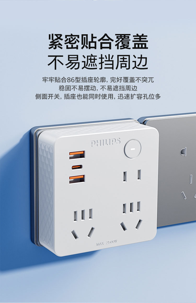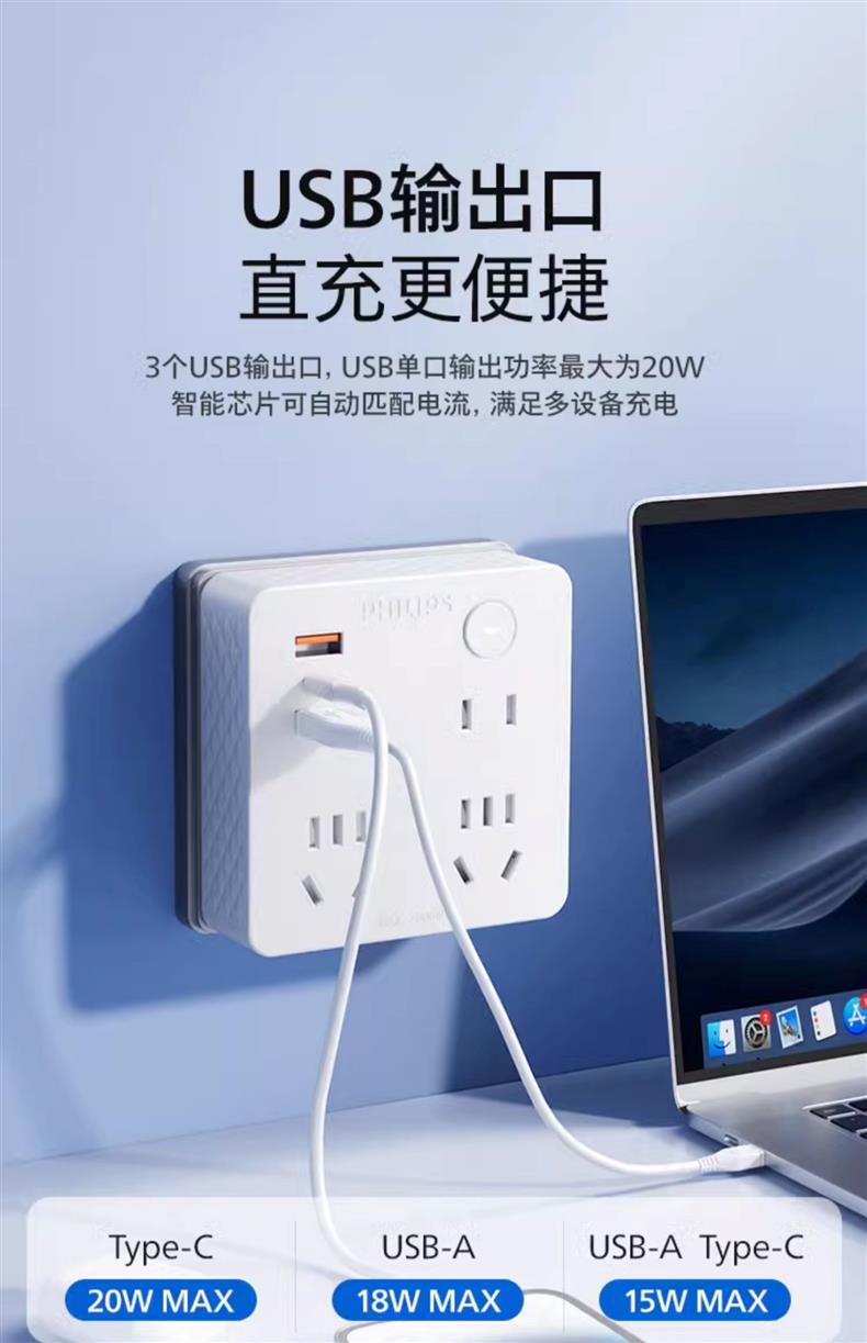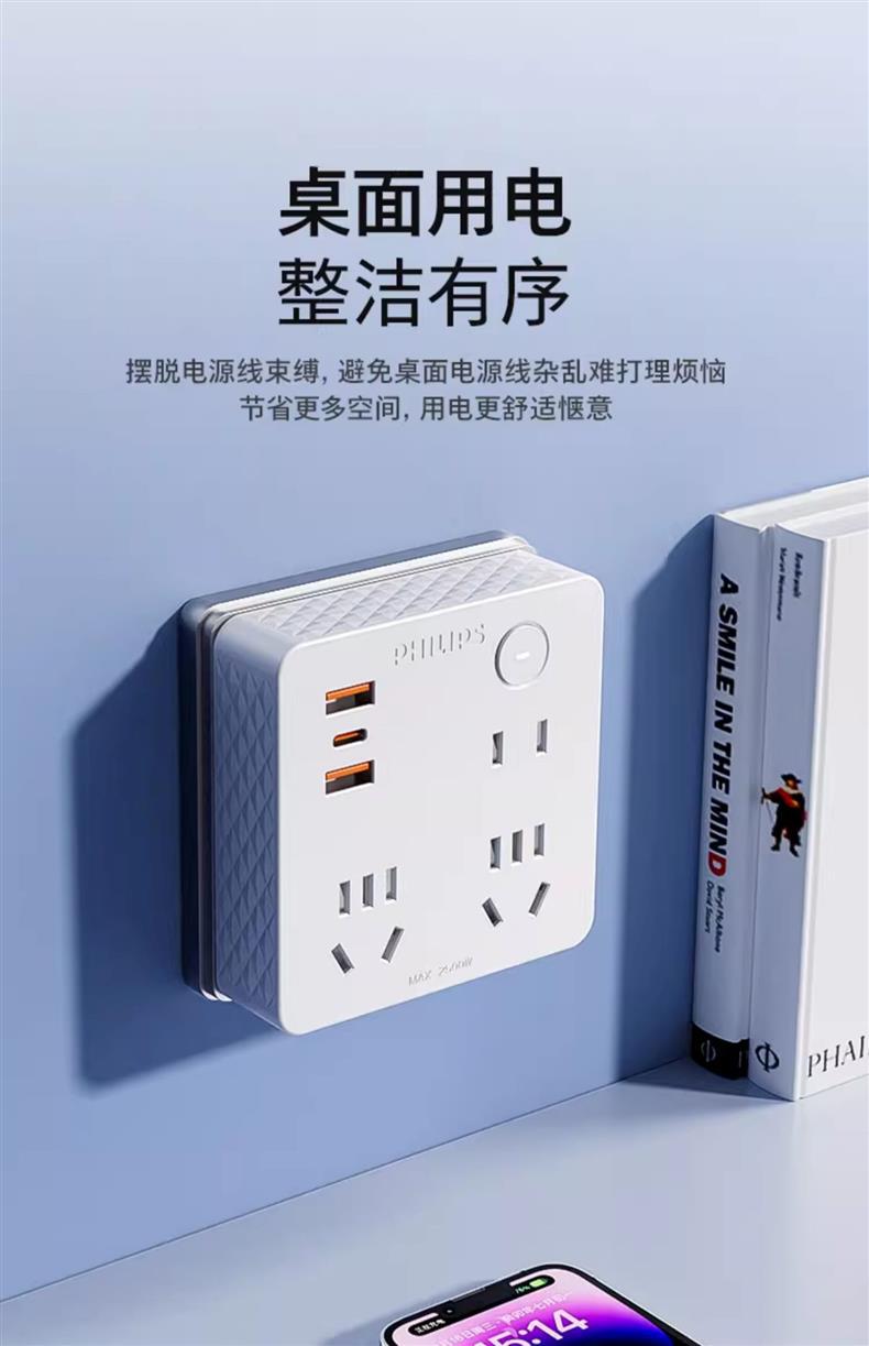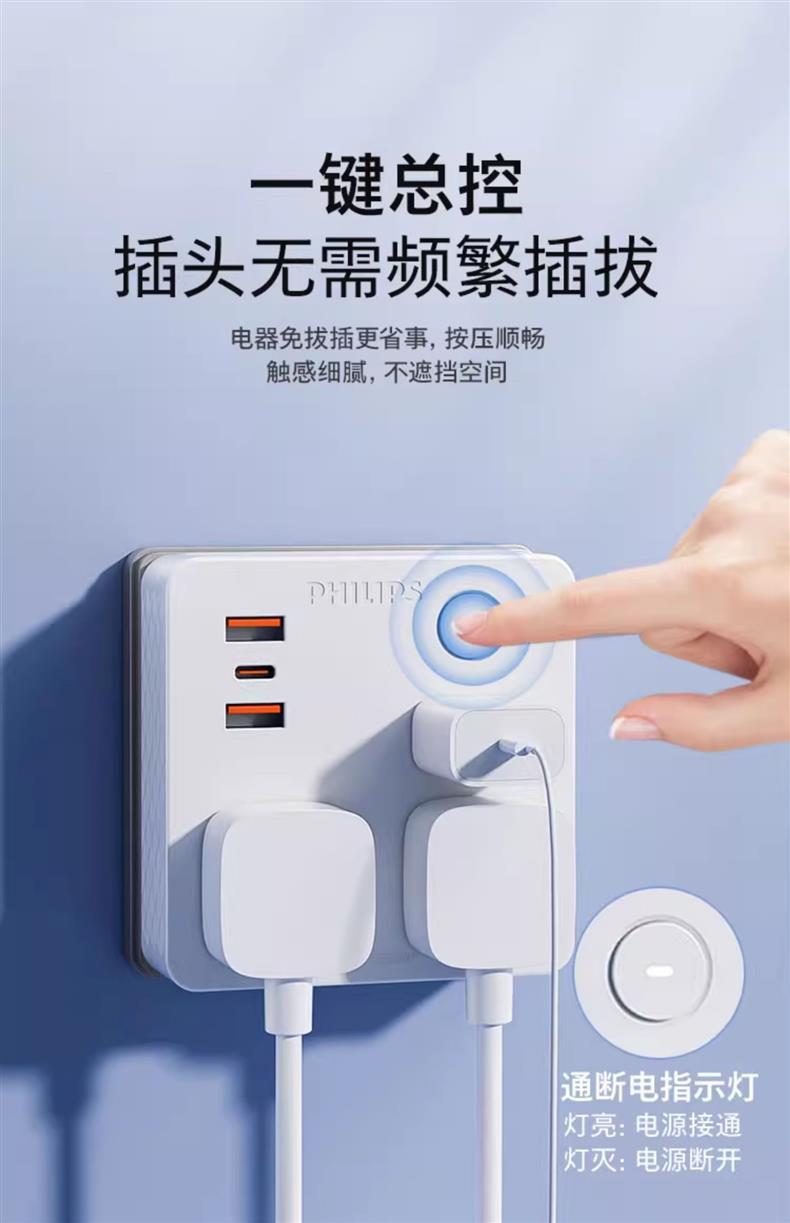 Преобразователь розетки Philips USB, многофункциональная настенная беспроводная панель