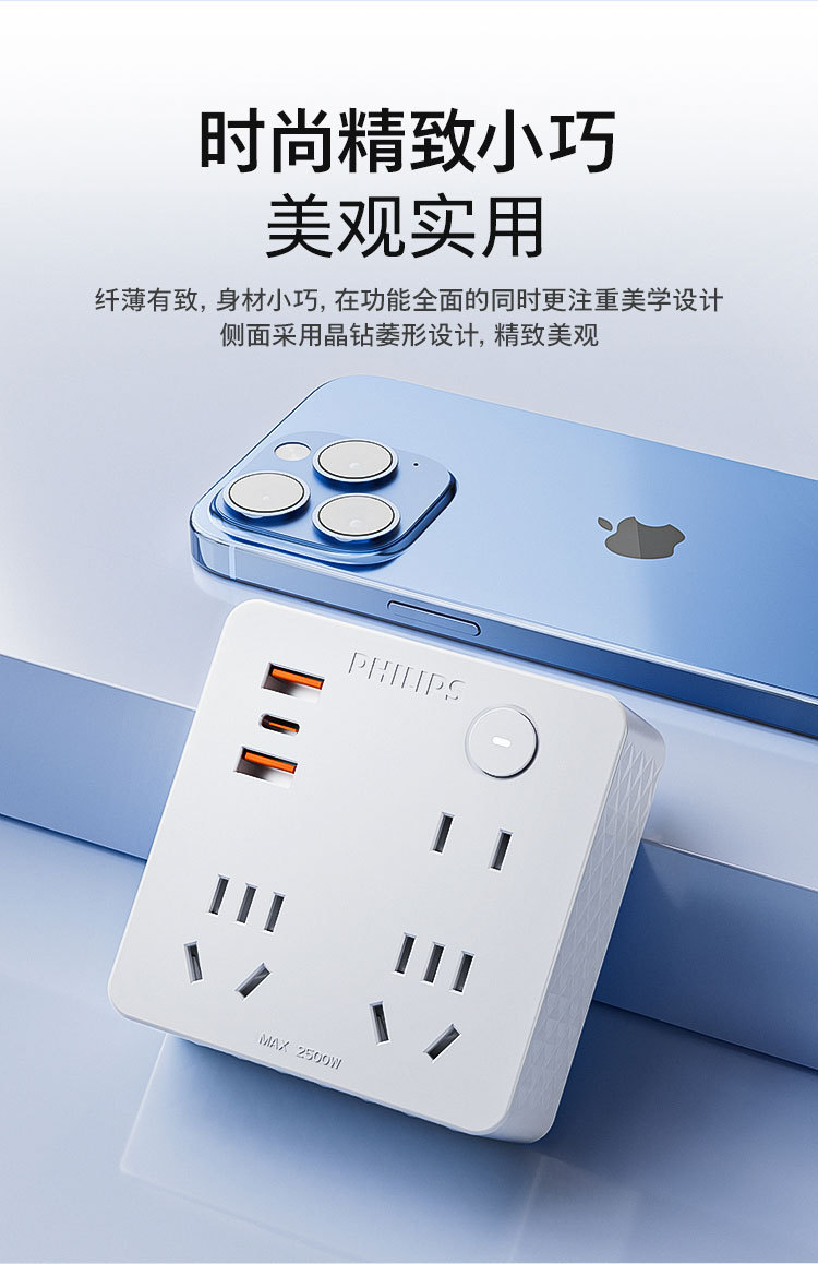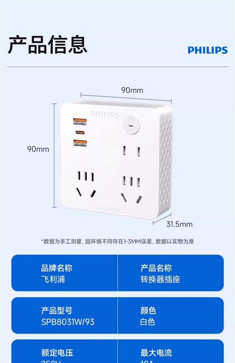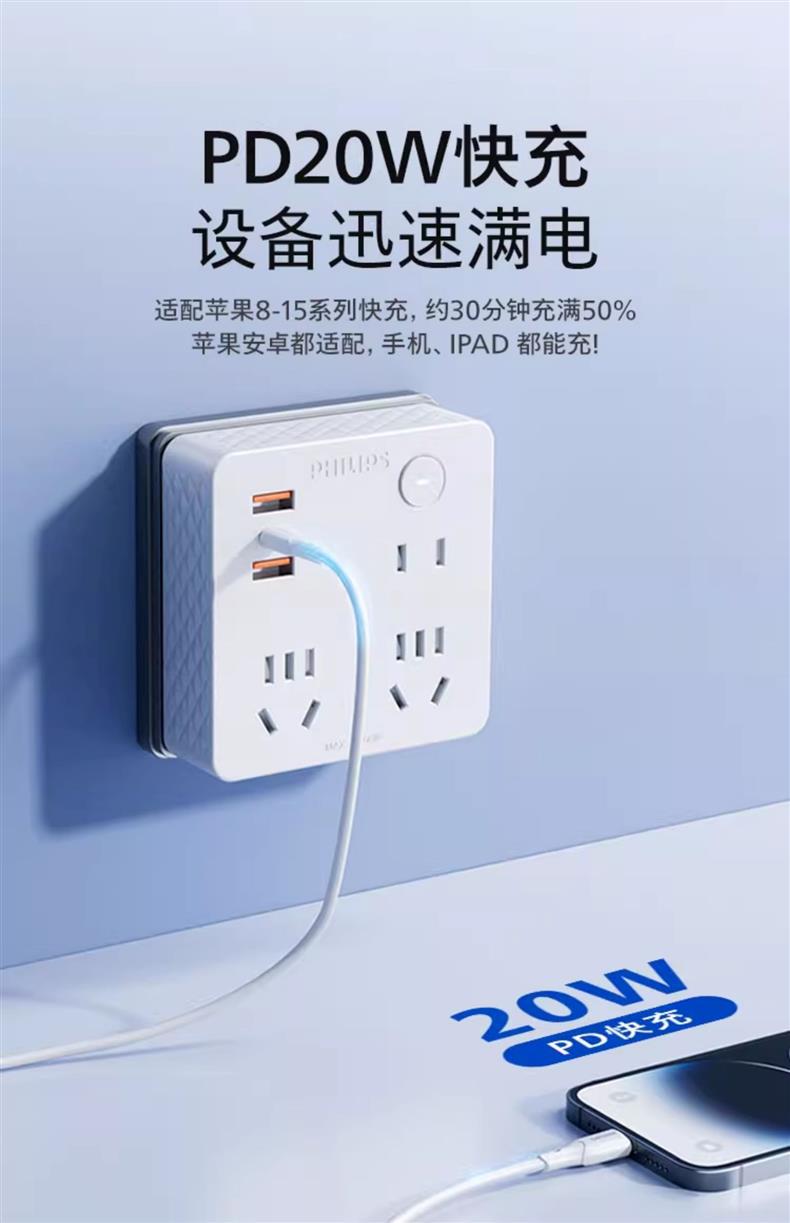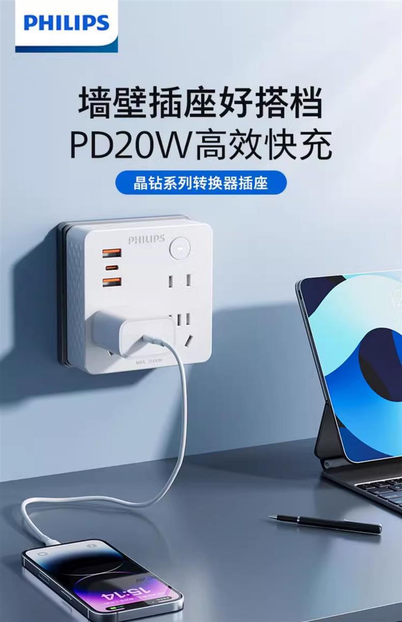 Преобразователь розетки Philips USB, многофункциональная настенная беспроводная панель