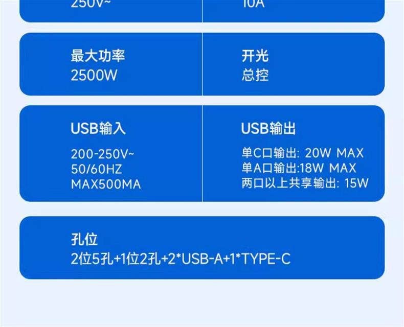 ![]() | [youth edition] 2-position five-hole + 2-position two-hole + 3usb (2a+c) | ¥87.48 / ≈ 1 055 ₽ | 58 | 6010676195487 | |