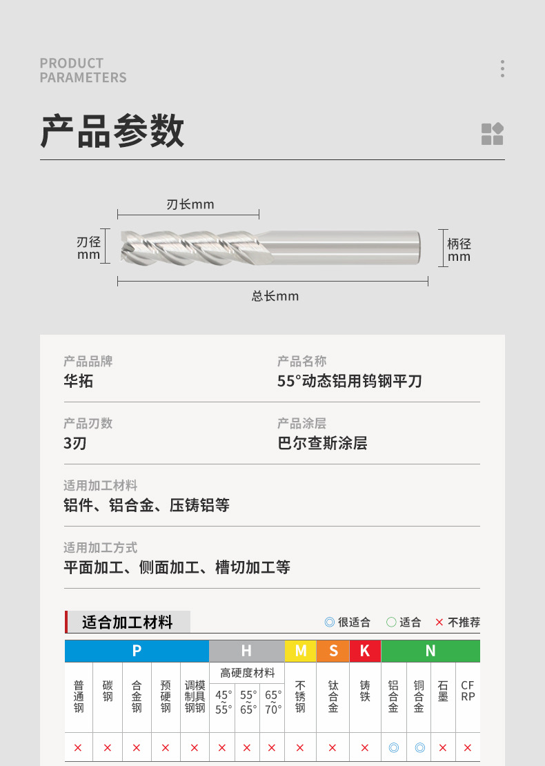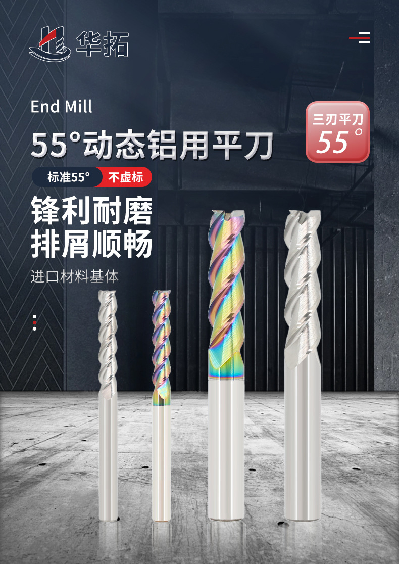 Категория продукта 55 degree 3-edge flat bottom end mill for aluminum