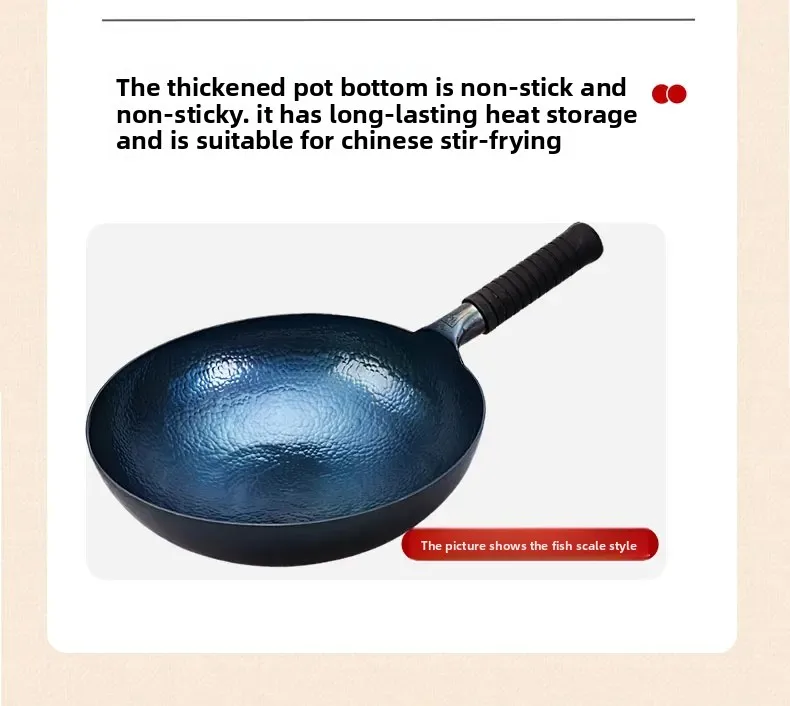 - Traditional Chinese Design : Featuring a fish scale pattern, this wok embodies traditional Chinese aesthetics, adding a cultural touch to your kitchen.