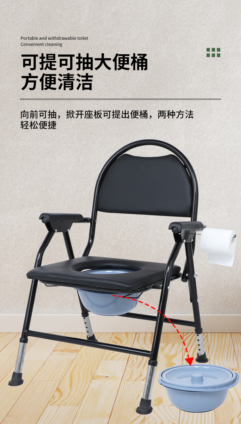 Складной туалетный стул для пожилых с ведром, нескользящий портативный туалет, многофункциональный домашний стул