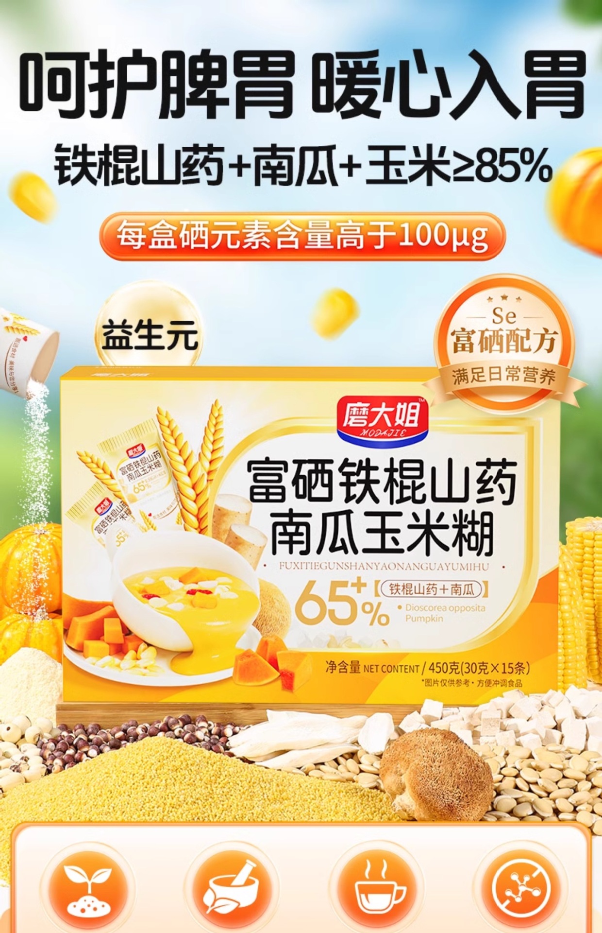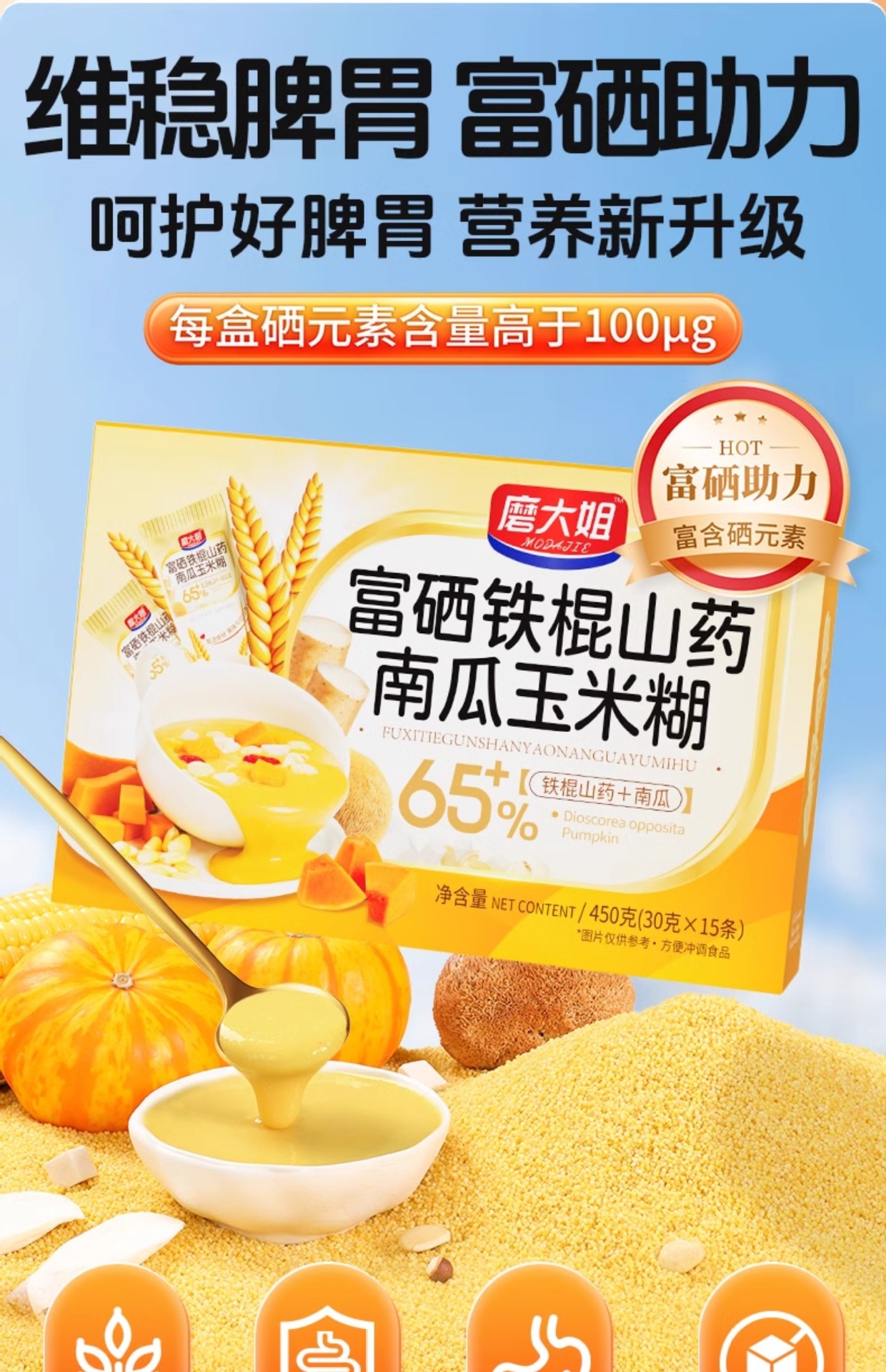 Паста из ямса, тыквы, кукурузы, селениум-содержащая пшенная каша, питательный завтрак, мгновенно заваримый, заменитель пищи