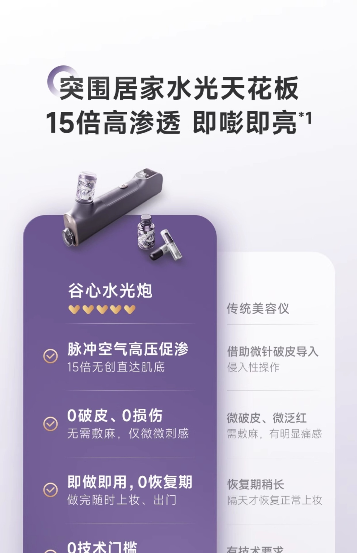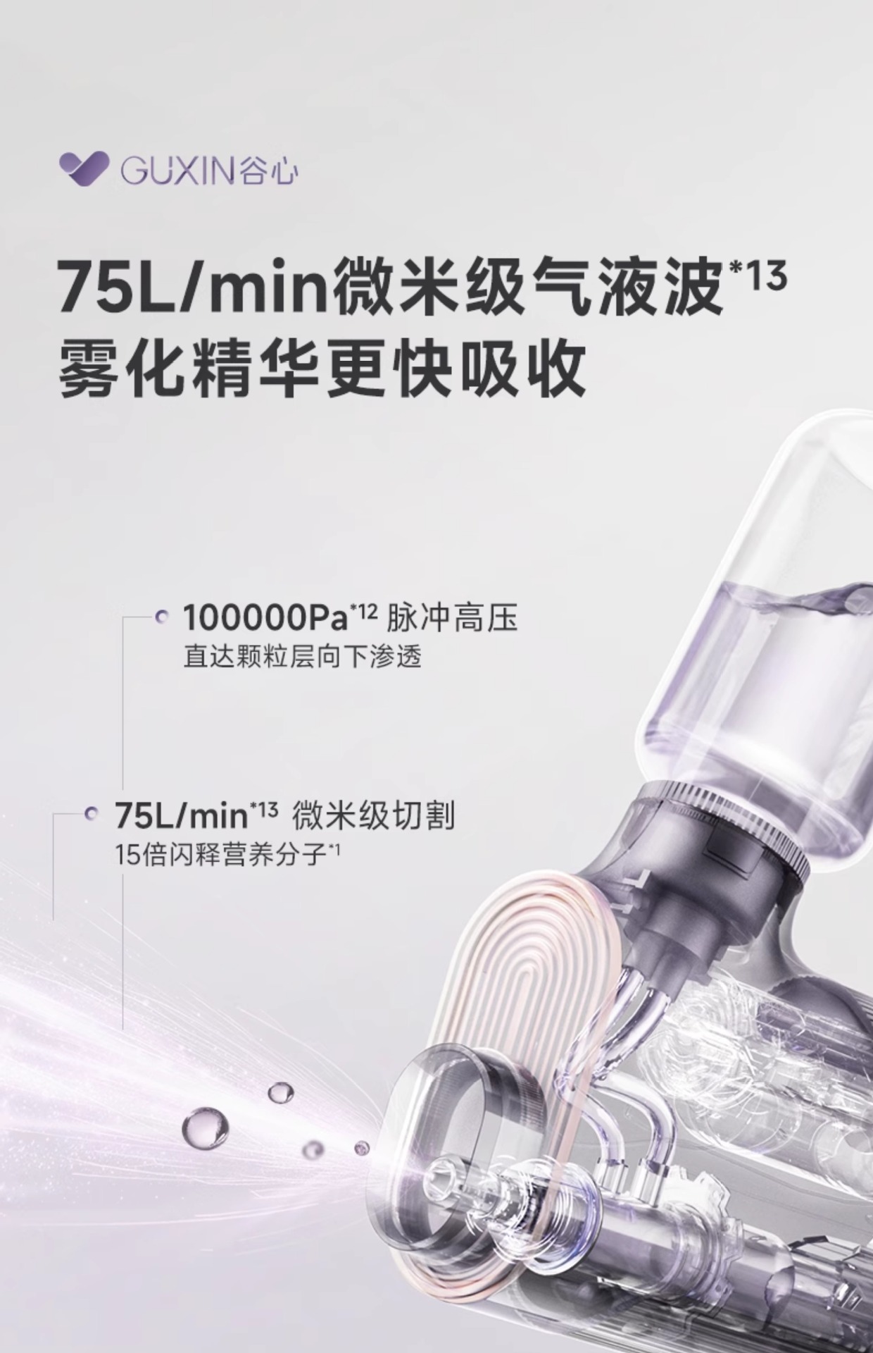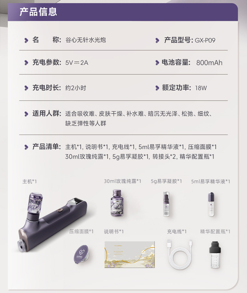 Прибор для красоты Guxin Эссенция Водяной свет Глубокое увлажнение Высокое давление кислорода Инъекционный инструмент Сверхпроводящий пистолет