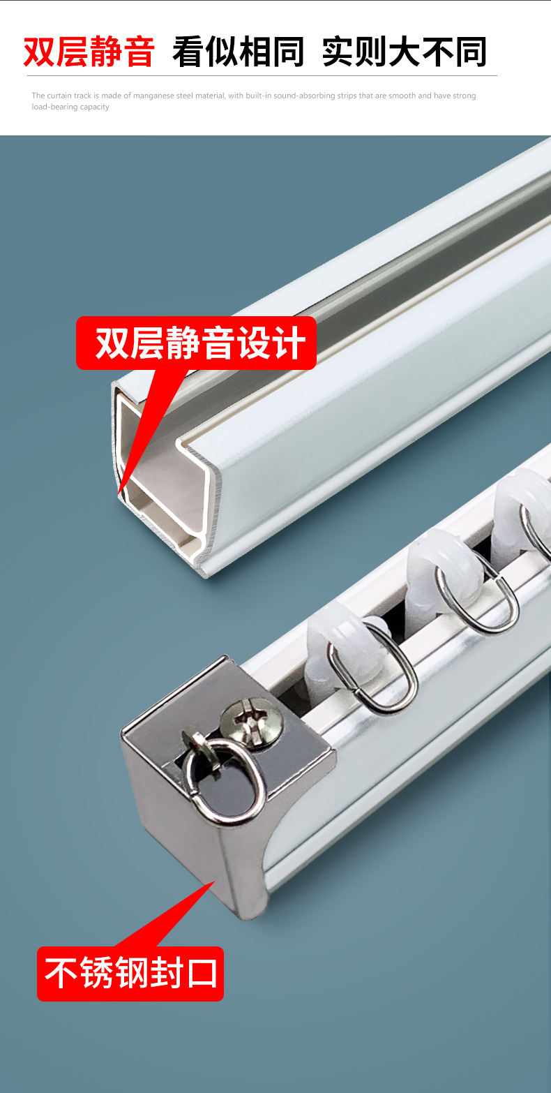 Двойной трек для штор, бесшумный, утолщенный, с верхним креплением, ролик для штор