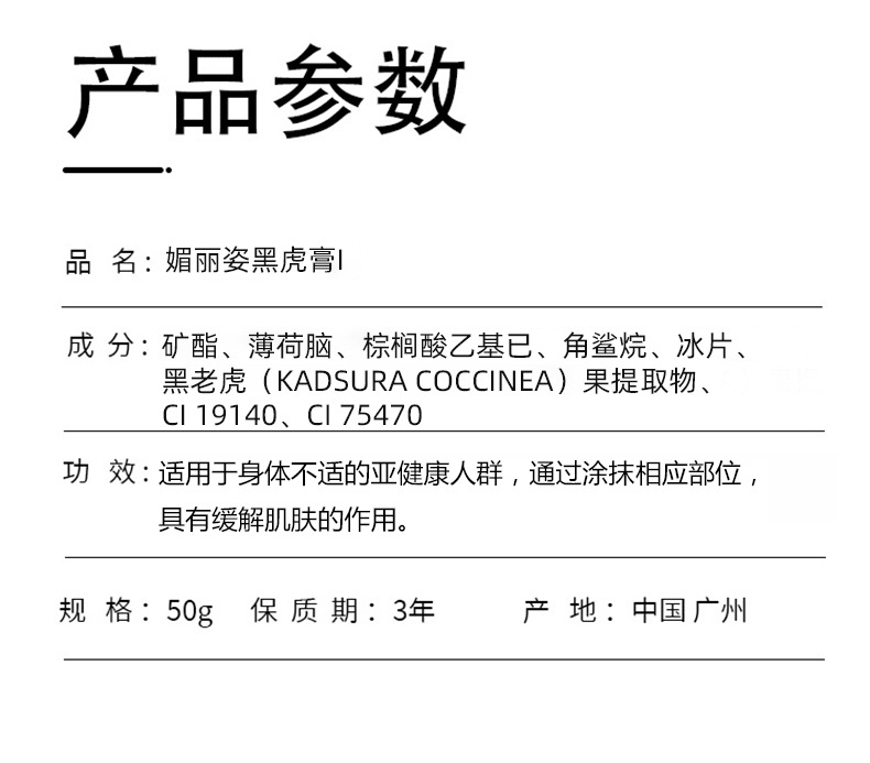 ![]() | 50g black tiger ointment | 1шт: ¥1.40 | 65137 | 6007921583167 |