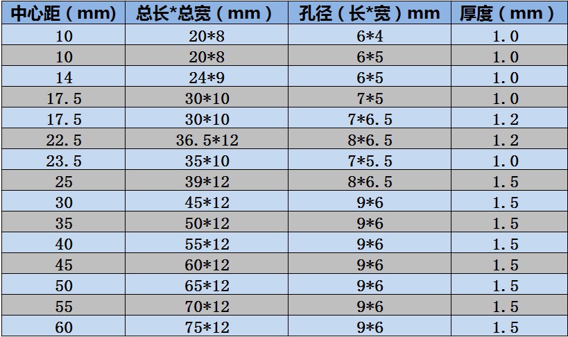 📦 | Center distance 45, hole 6x9, width 12, thickness 1.5mm | ¥1.2 / ≈ 14 ₽ | 18000 | 5842969120869 | |