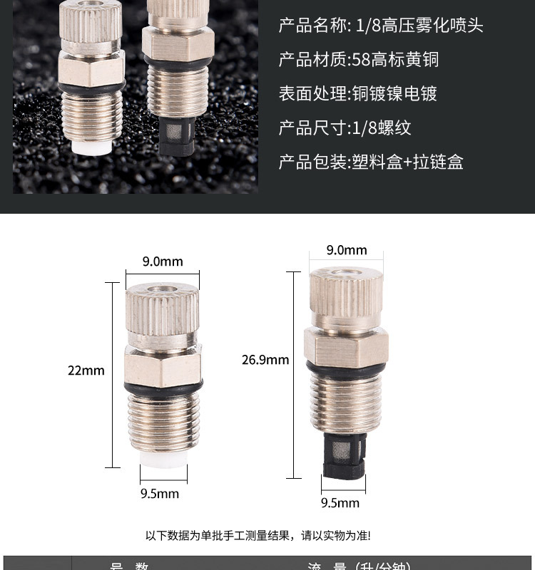 📦 | 1/8 high pressure atomizing nozzle (filter element type) hole diameter, please contact customer service for notes | ¥1.97 / ≈ 24 ₽ | 5000 | 5841933925828 | |