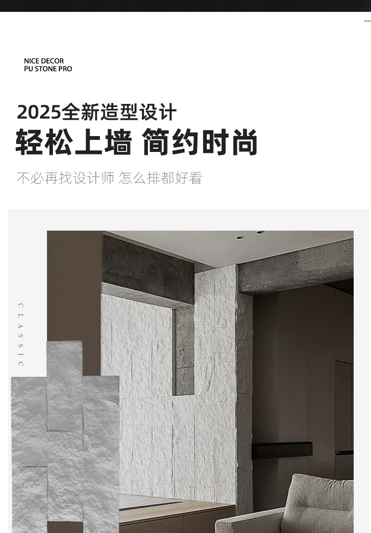 Новый 3 см Pu каменная кожа, легкий имитационный камень для стен, культурный камень для внутренней и внешней отделки