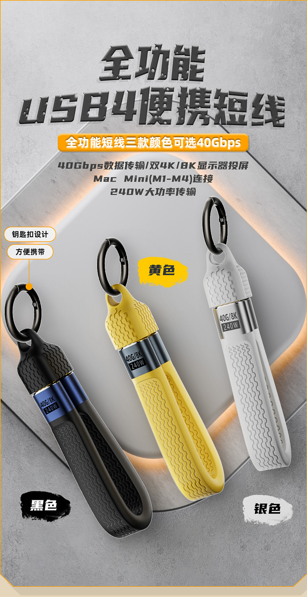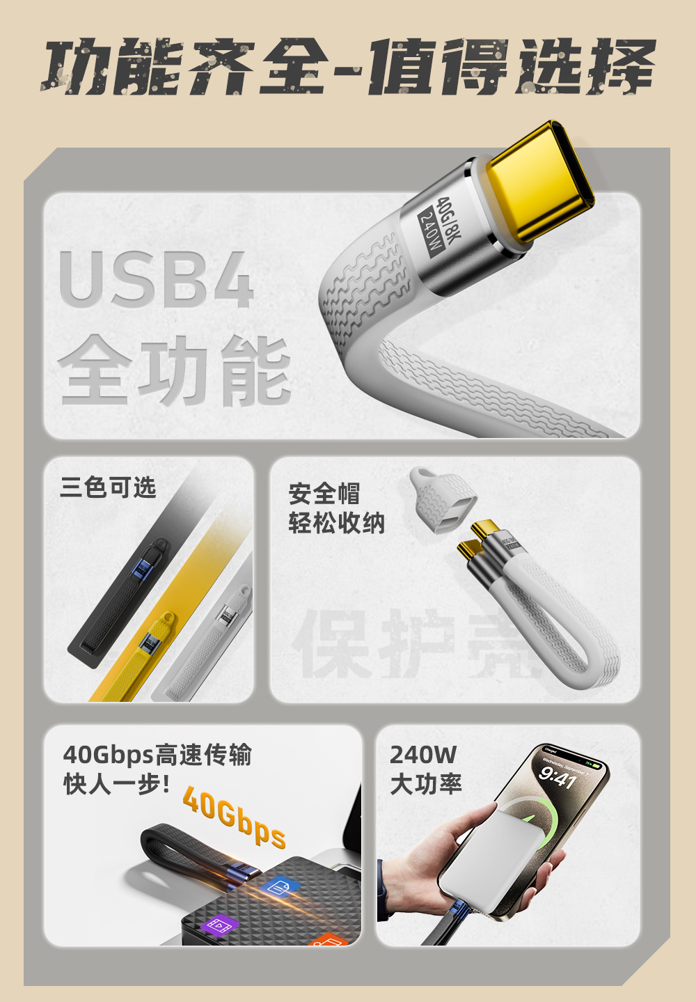 Type-C мужской на Type-C мужской 240Wfpc короткий кабель 40Gbusb4.08K Thunderbolt 4 полнофункциональный кабель передачи данных