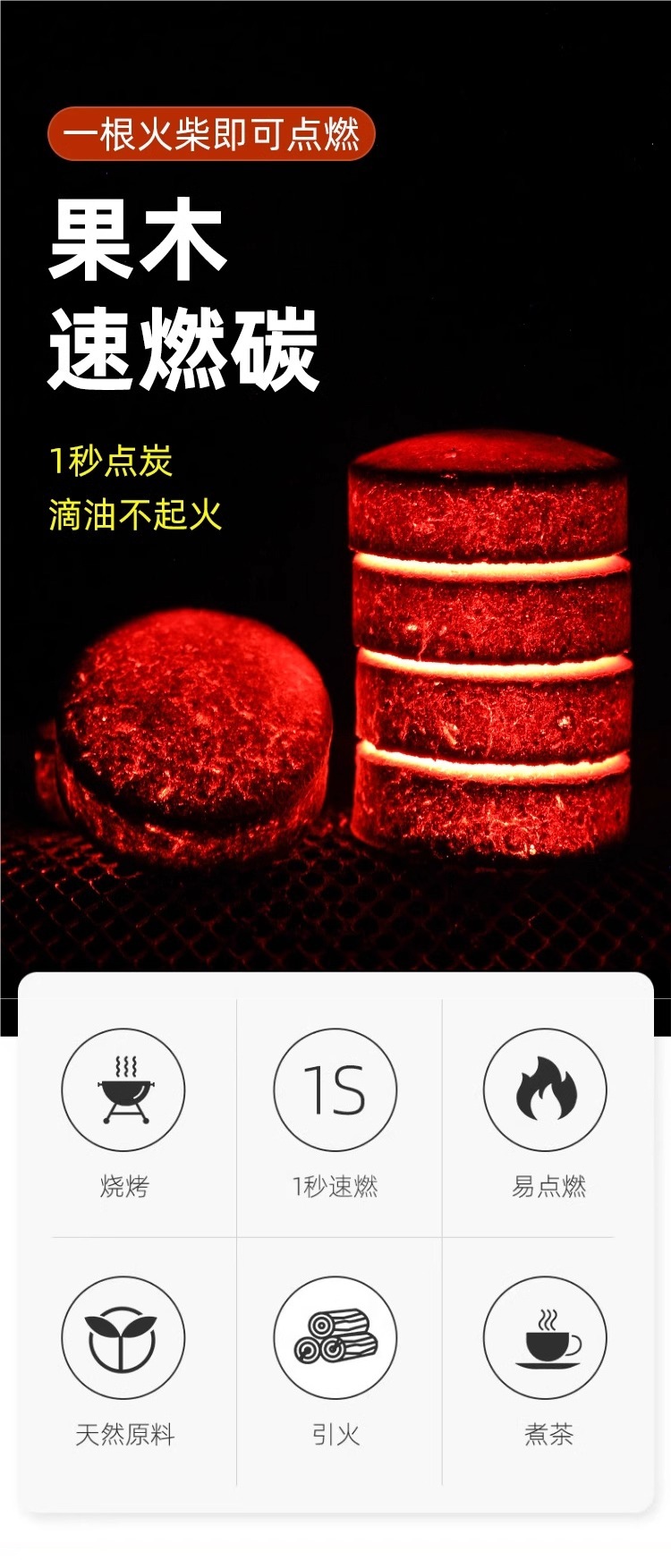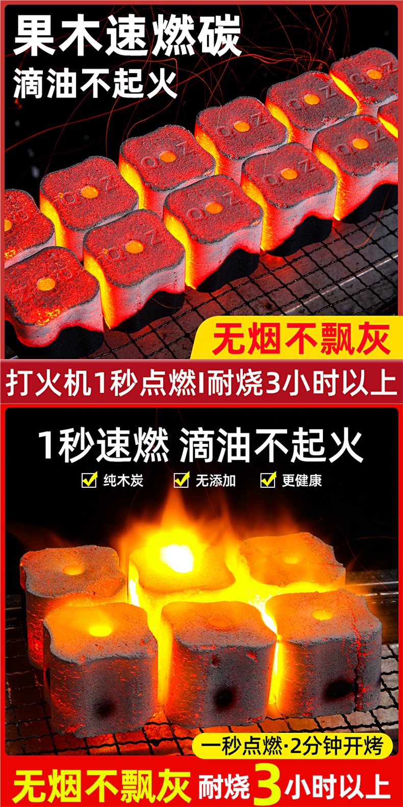 Быстро сгорающий бездымный уголь для барбекю, фруктовый уголь, горючий бамбуковый уголь, домашние квадратные и круглые угольные блоки для заваривания чая и средства для розжига