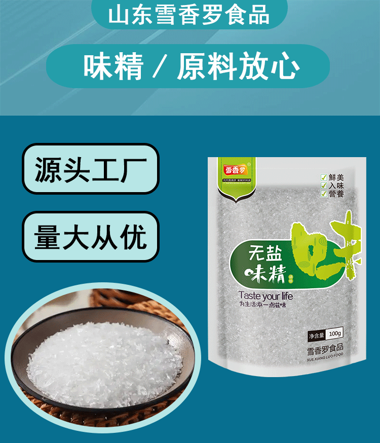 ![]() | 400g salt-free msg 1 pack | ¥10.88 / ≈ 131 ₽ | 909 | 5961690933906 | |