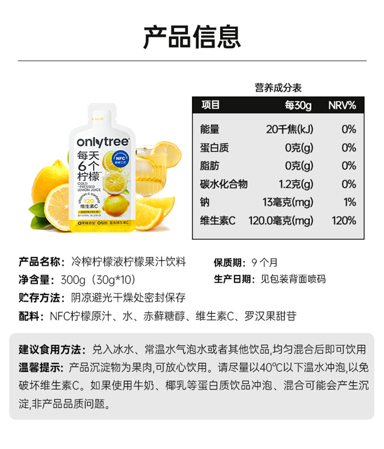 Концентрат лимонного сока Onlytree, без добавления сахара, многомерный сок