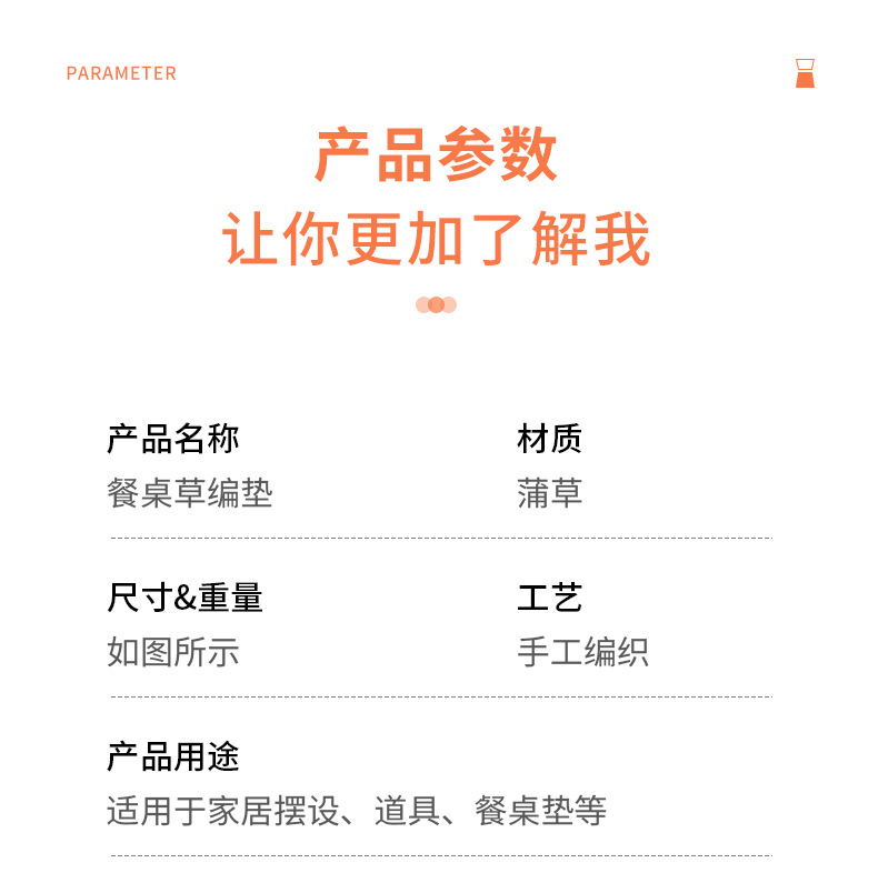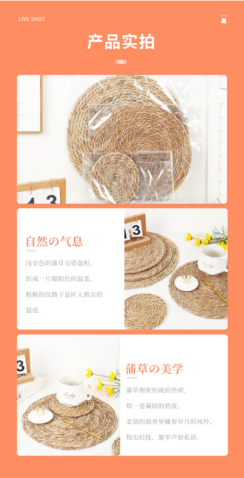 ![]() | Cattail table straw mat-diameter 38cm | ¥3.3 / ≈ 40 ₽ | 2849 | 6011178099448 |