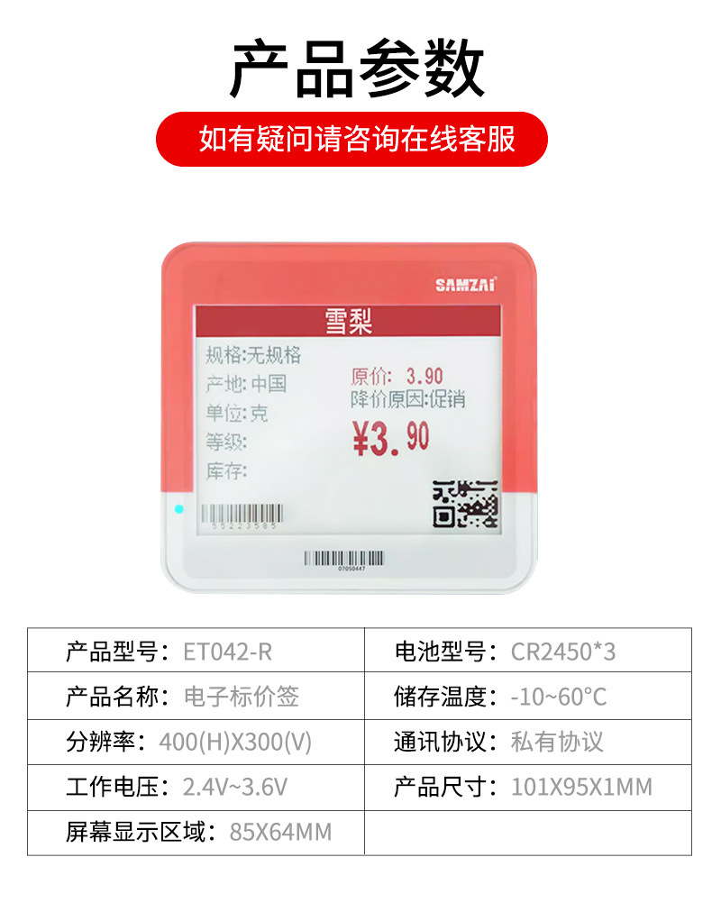 ![]() | 4.2inch three-color electronic price tag (bluetooth model) | ¥150.0 / ≈ 1 807 ₽ | 800 | 6008255102039 | |